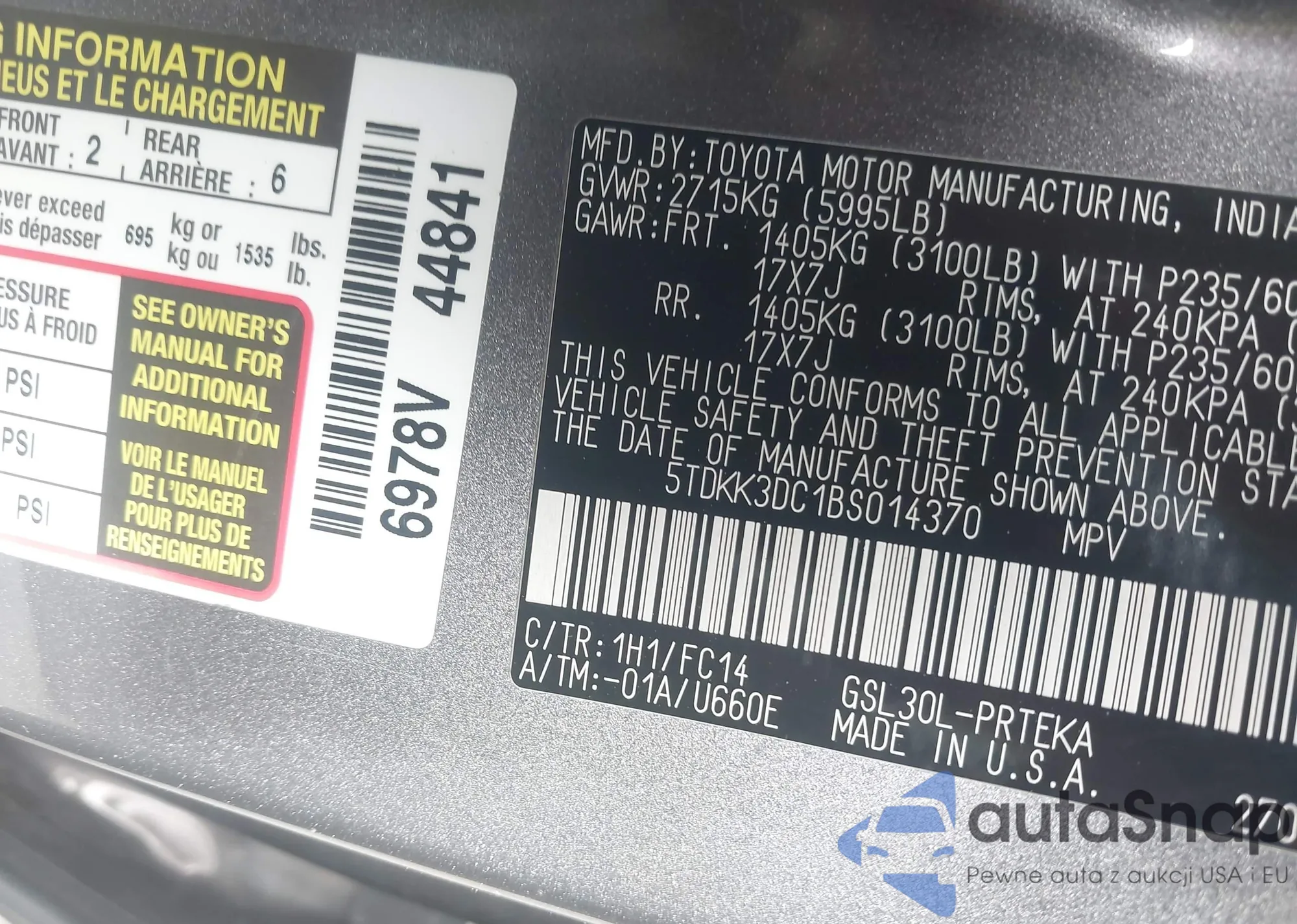 LOT: 43029942 VIN: 5TDKK3DC1BS014370
