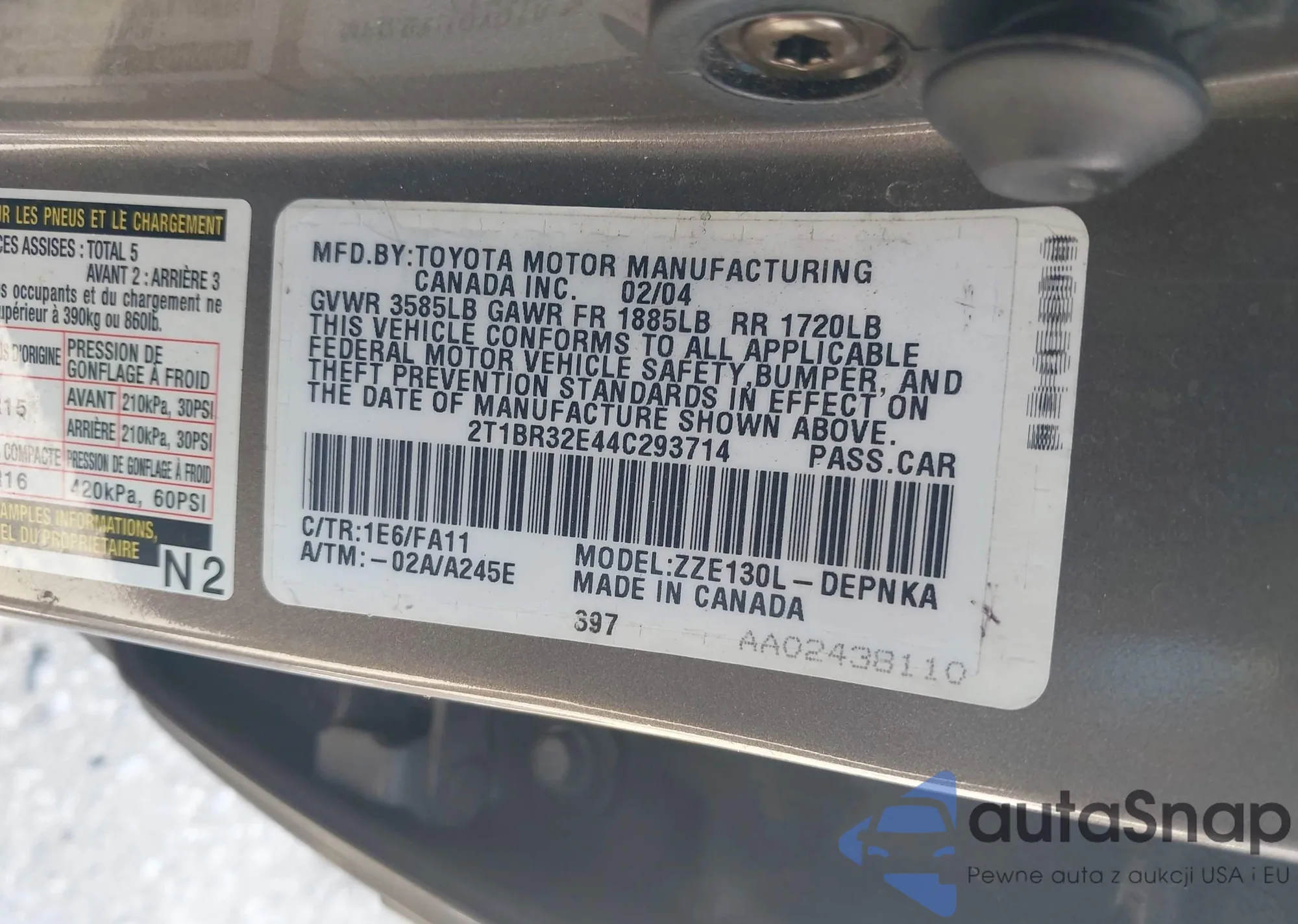 • VIN 2T1BR32E44C293714