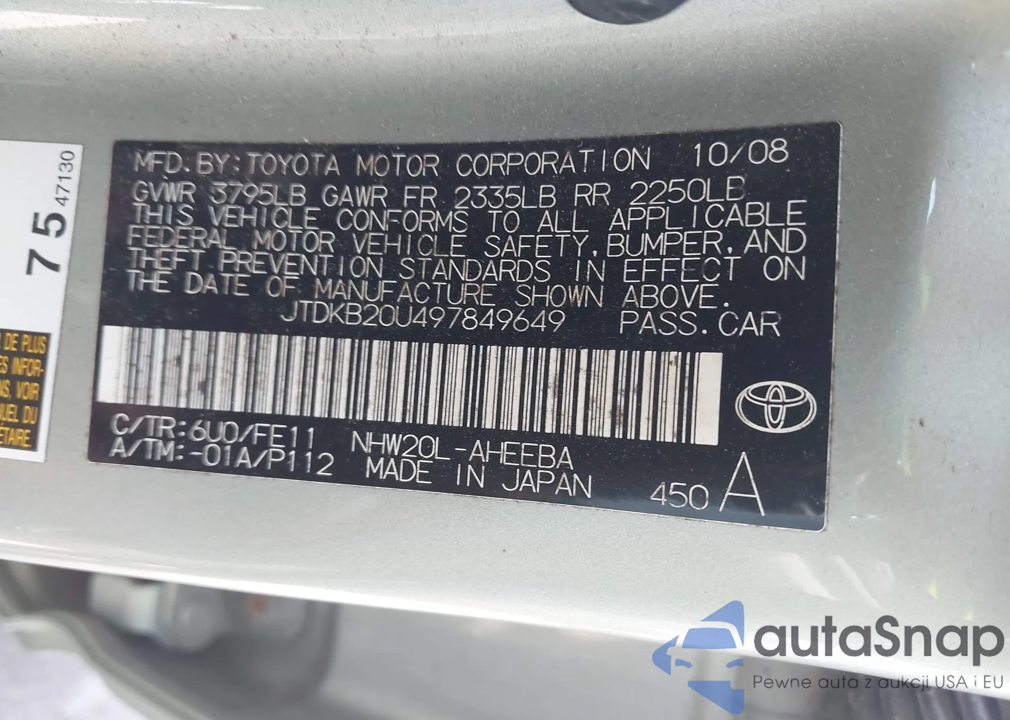 • VIN 5N1AT3BA2MC738708
