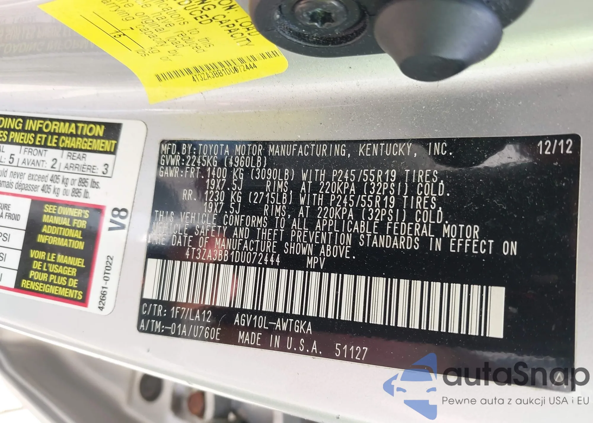 • VIN 4T3ZA3BB1DU072444