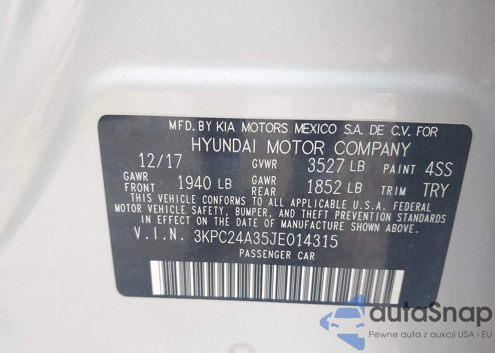 • VIN 3KPC24A35JE014315