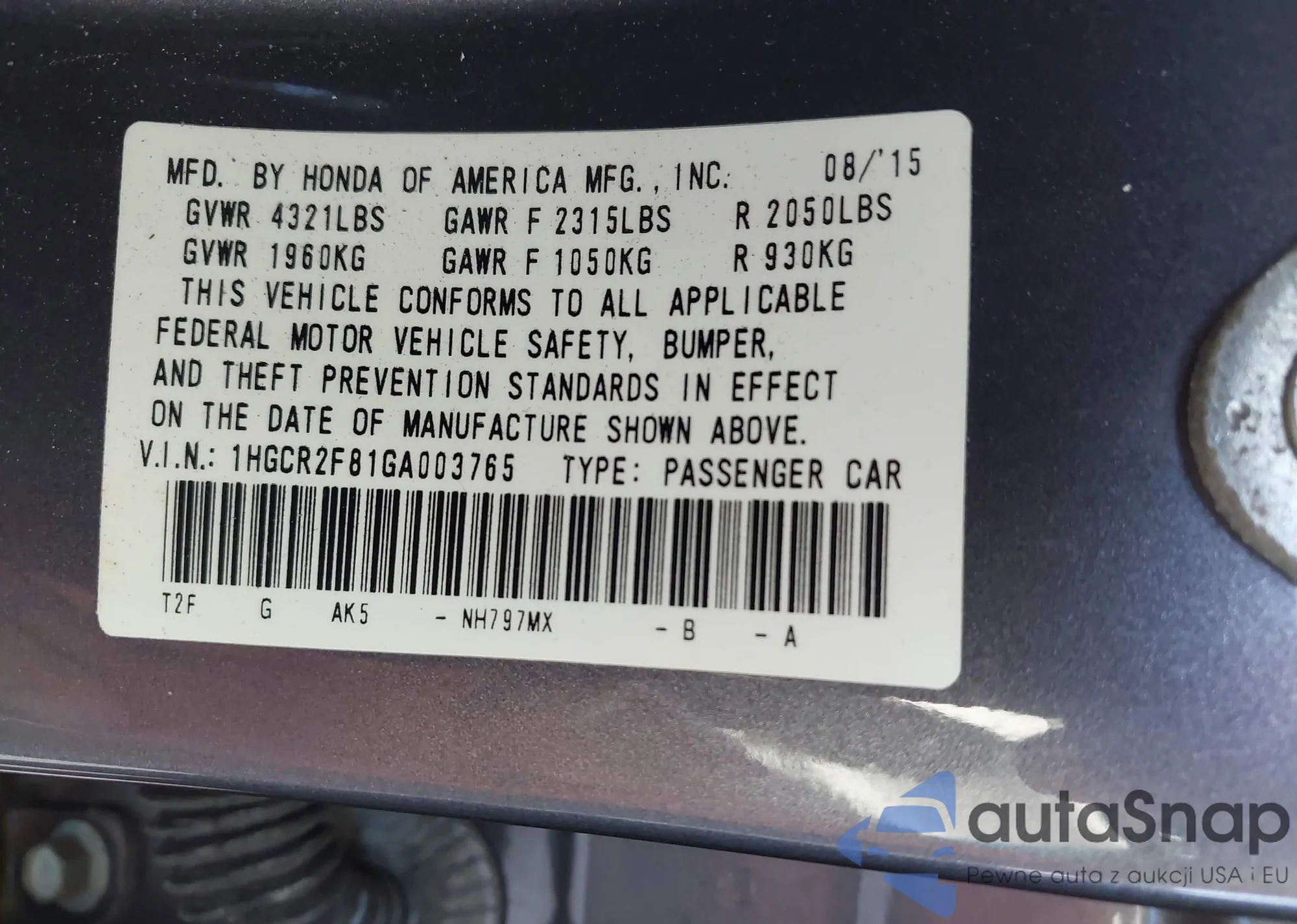 • VIN 5FNRL5H63GB034434