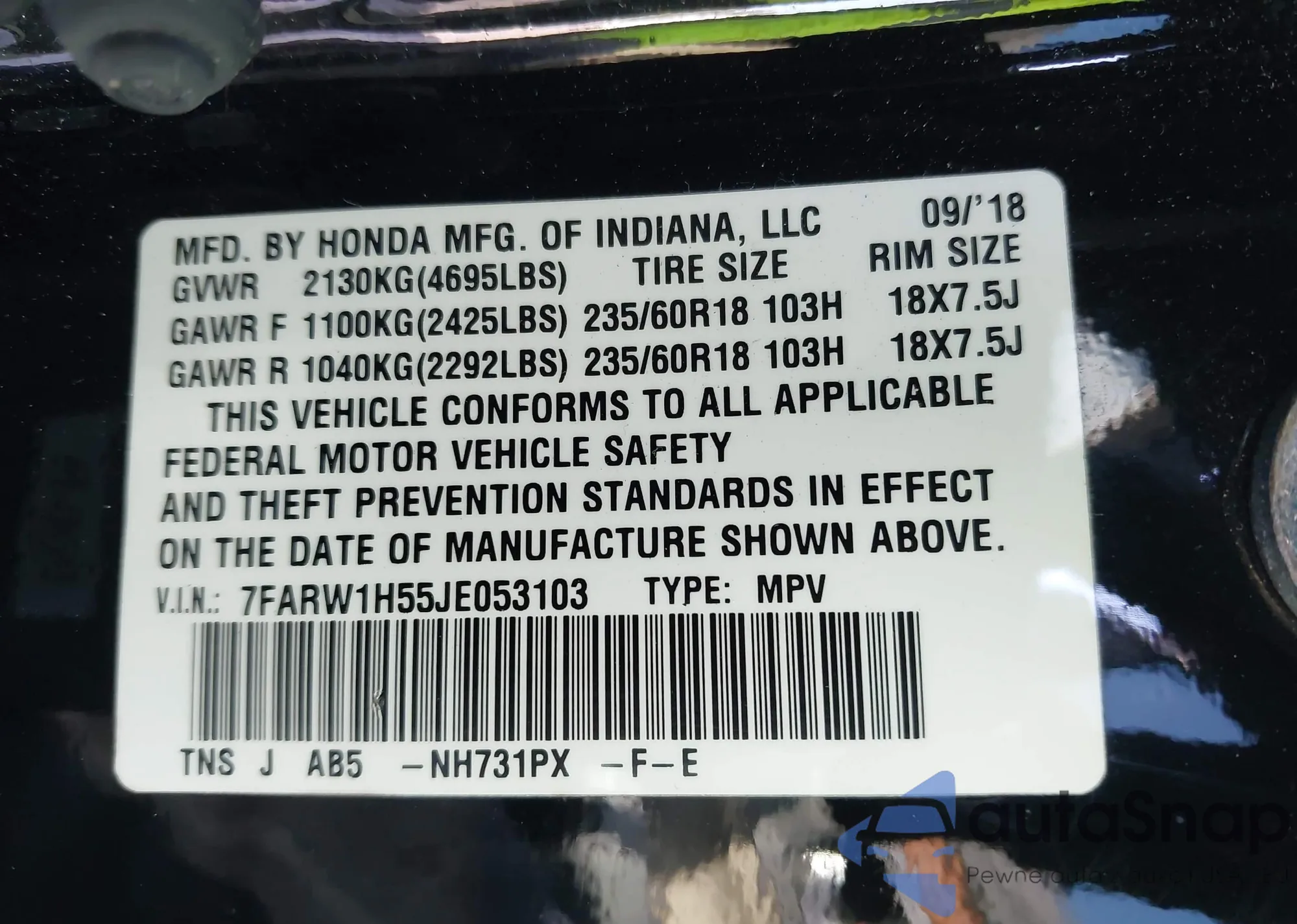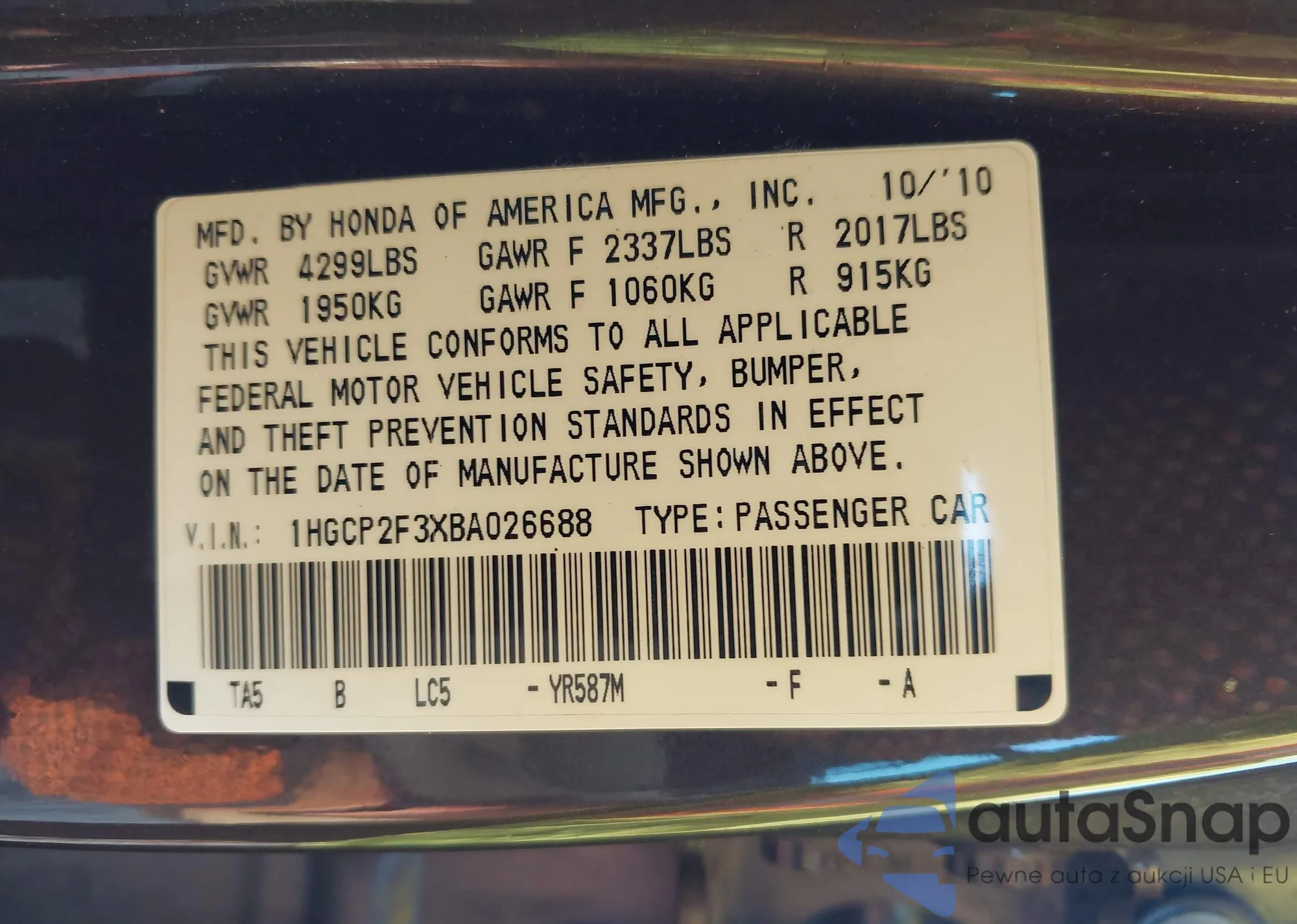 LOT: 42909171 VIN: 1HGCP2F3XBA026688