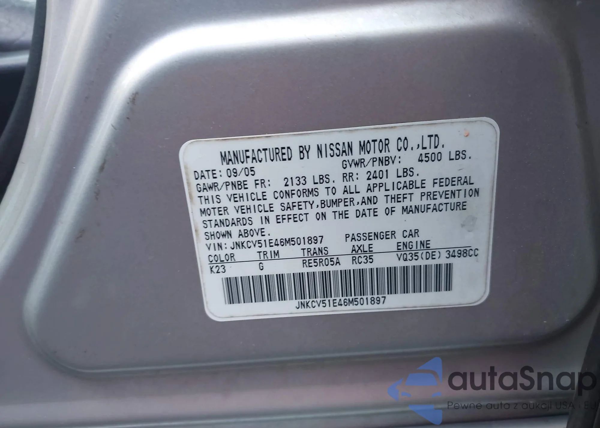 LOT: 43034000 VIN: JNKCV51E46M501897