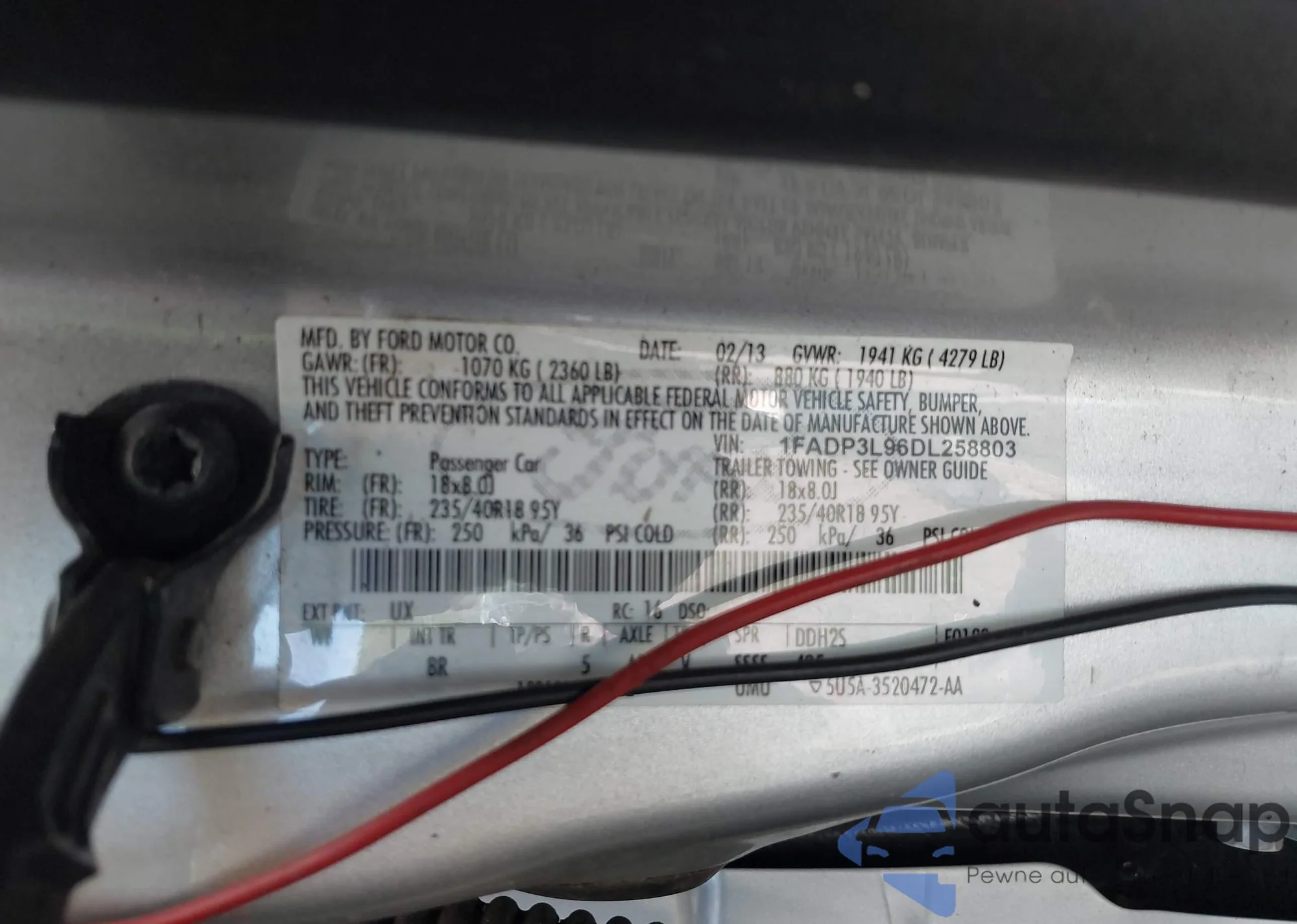• VIN 1FADP3L96DL258803