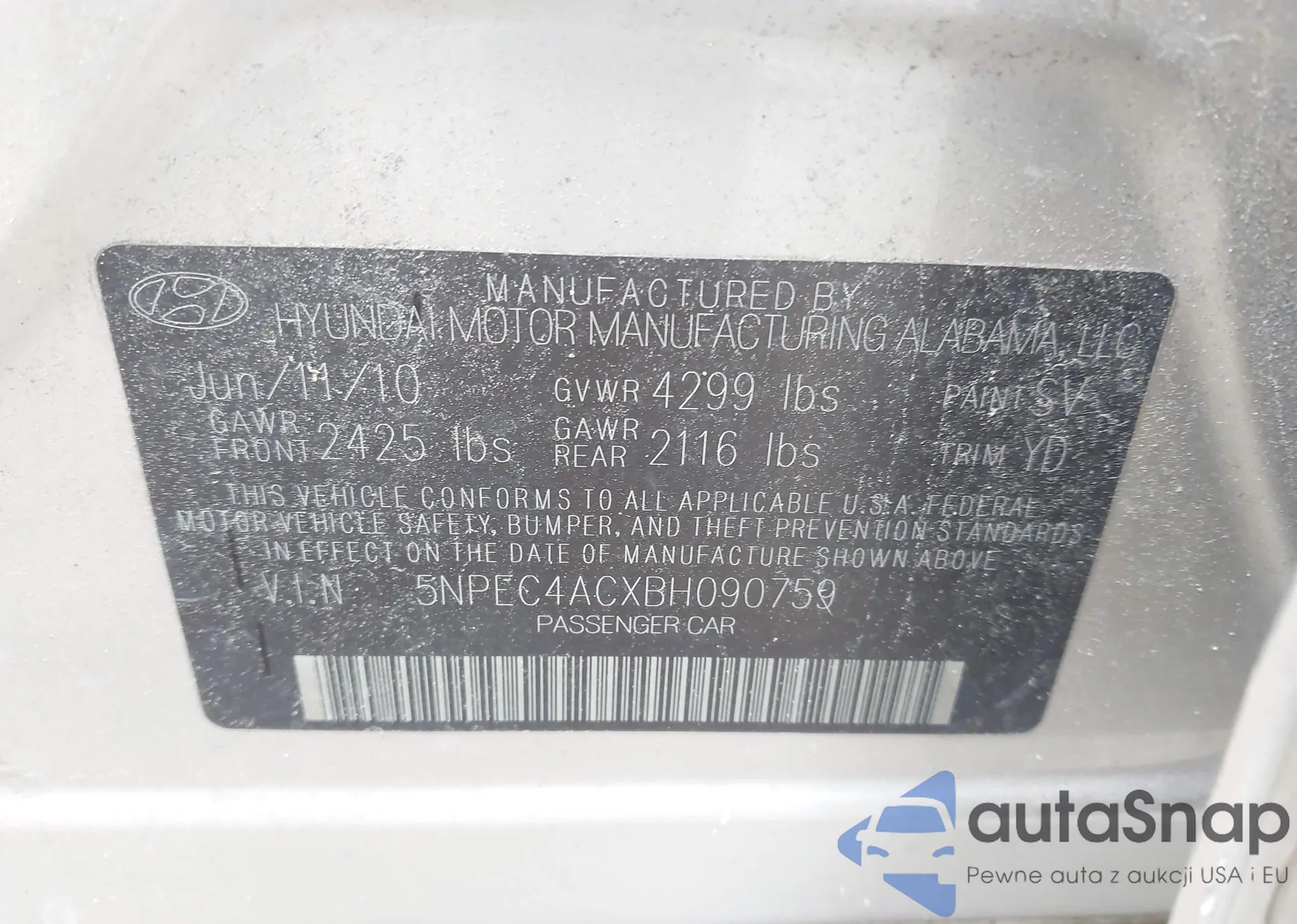 LOT: 42981097 VIN: 5NPEC4ACXBH090759