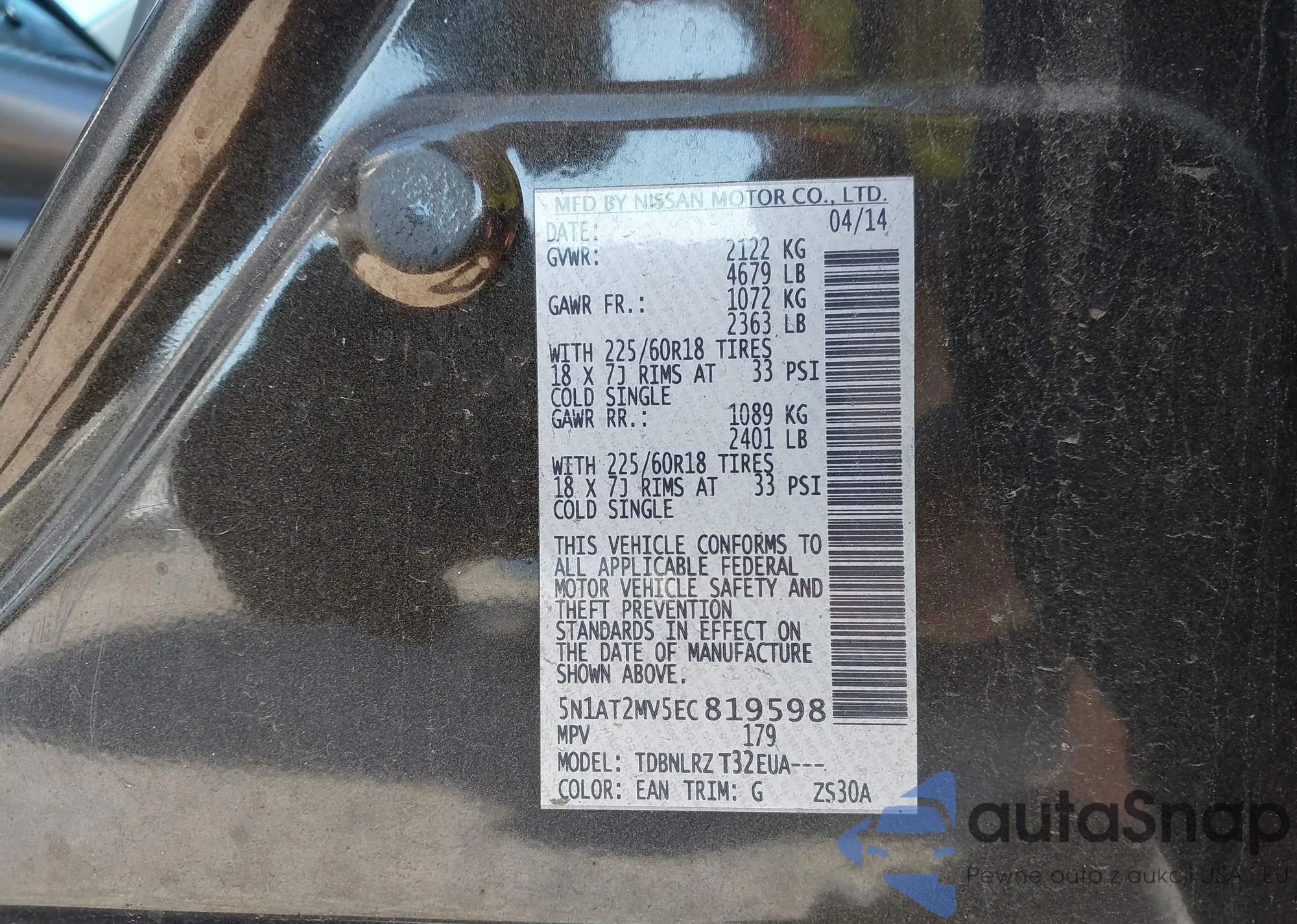 • VIN 5N1AT2MV5EC819598