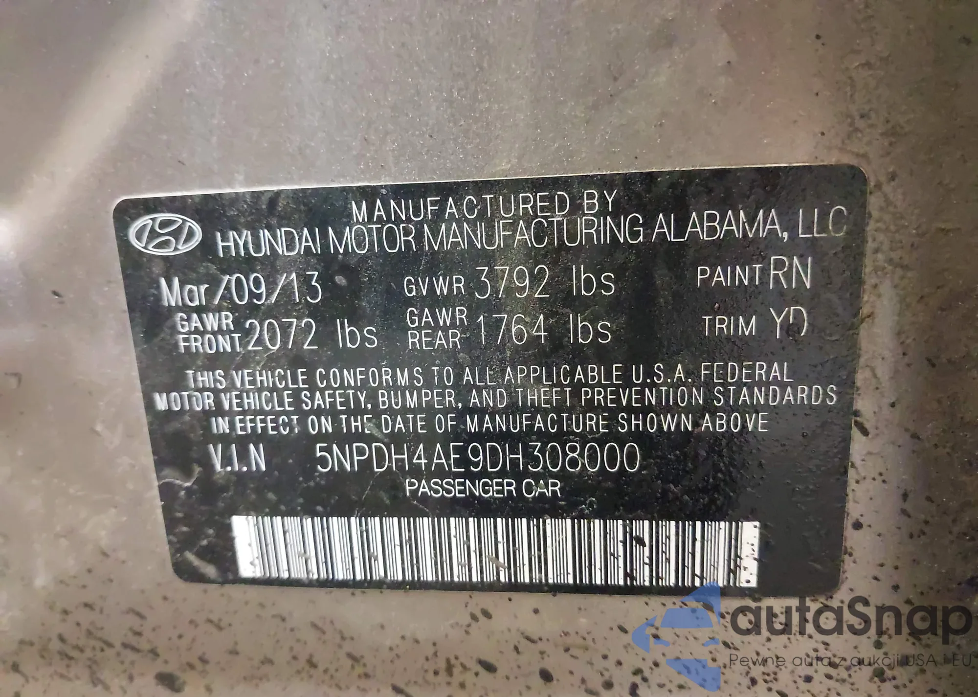 • VIN 5NPE24AF6HH595381