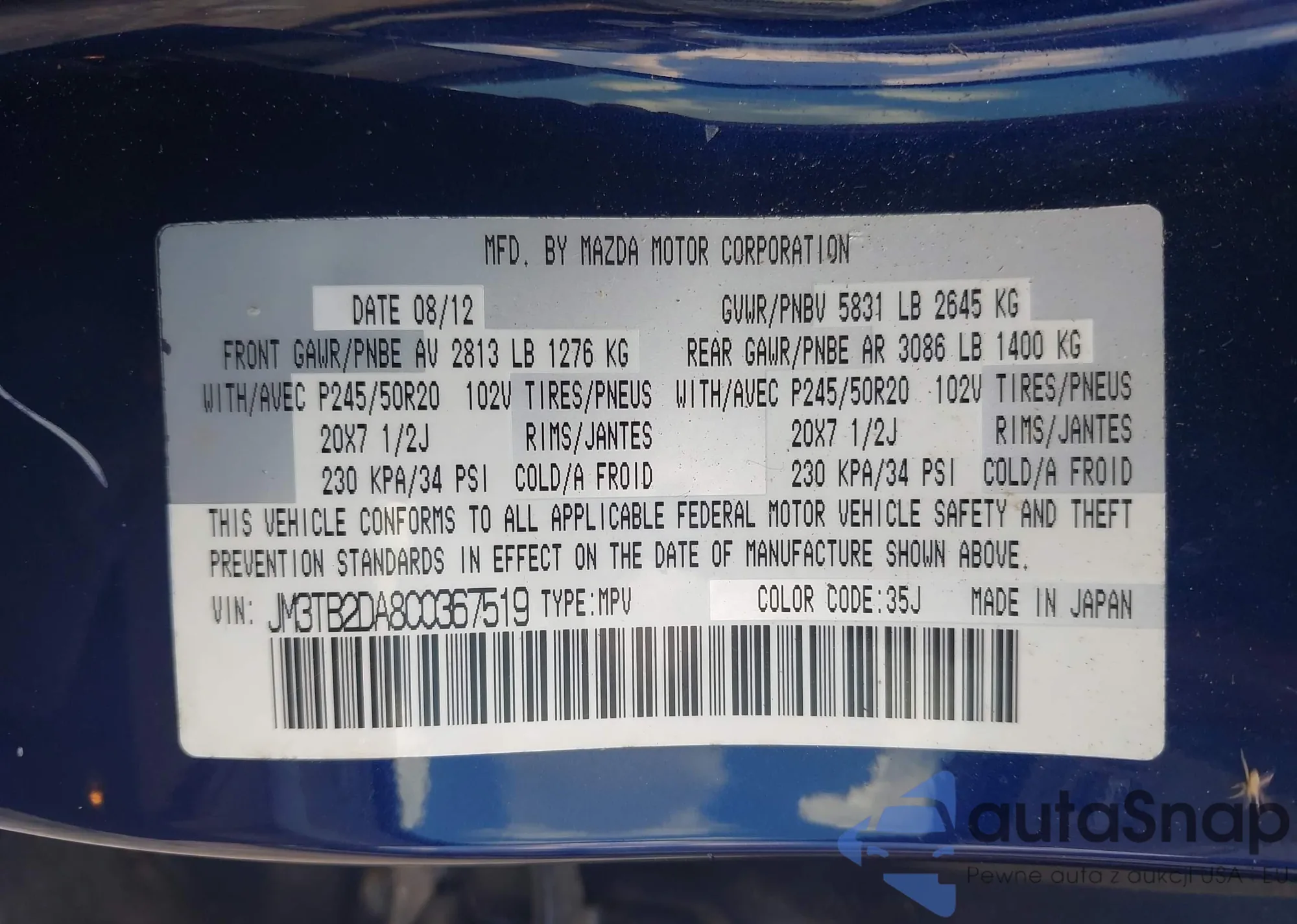 • VIN 1YVHZ8BH8A5M18489