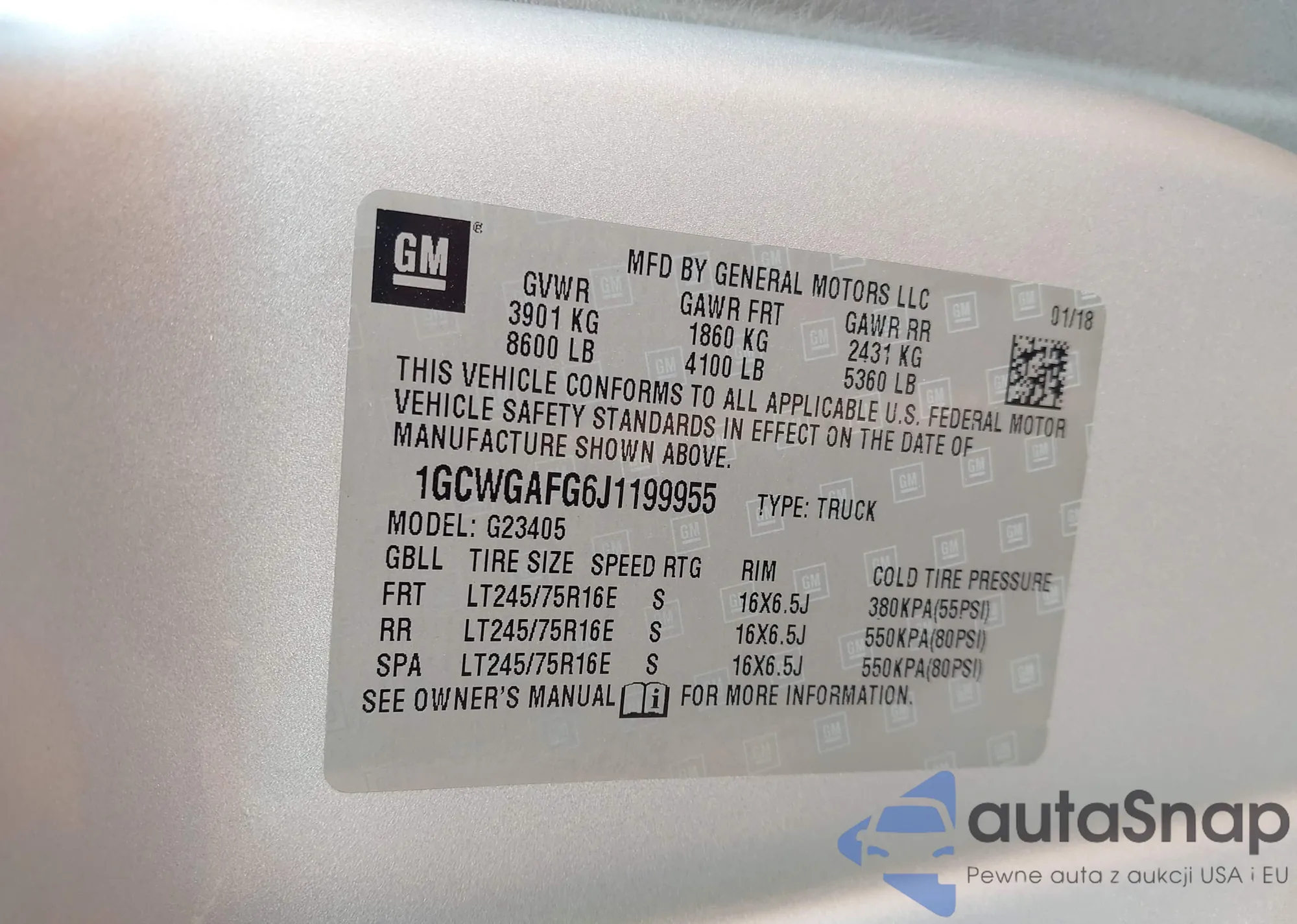 LOT: 42975644 VIN: 1GCWGAFG6J1199955