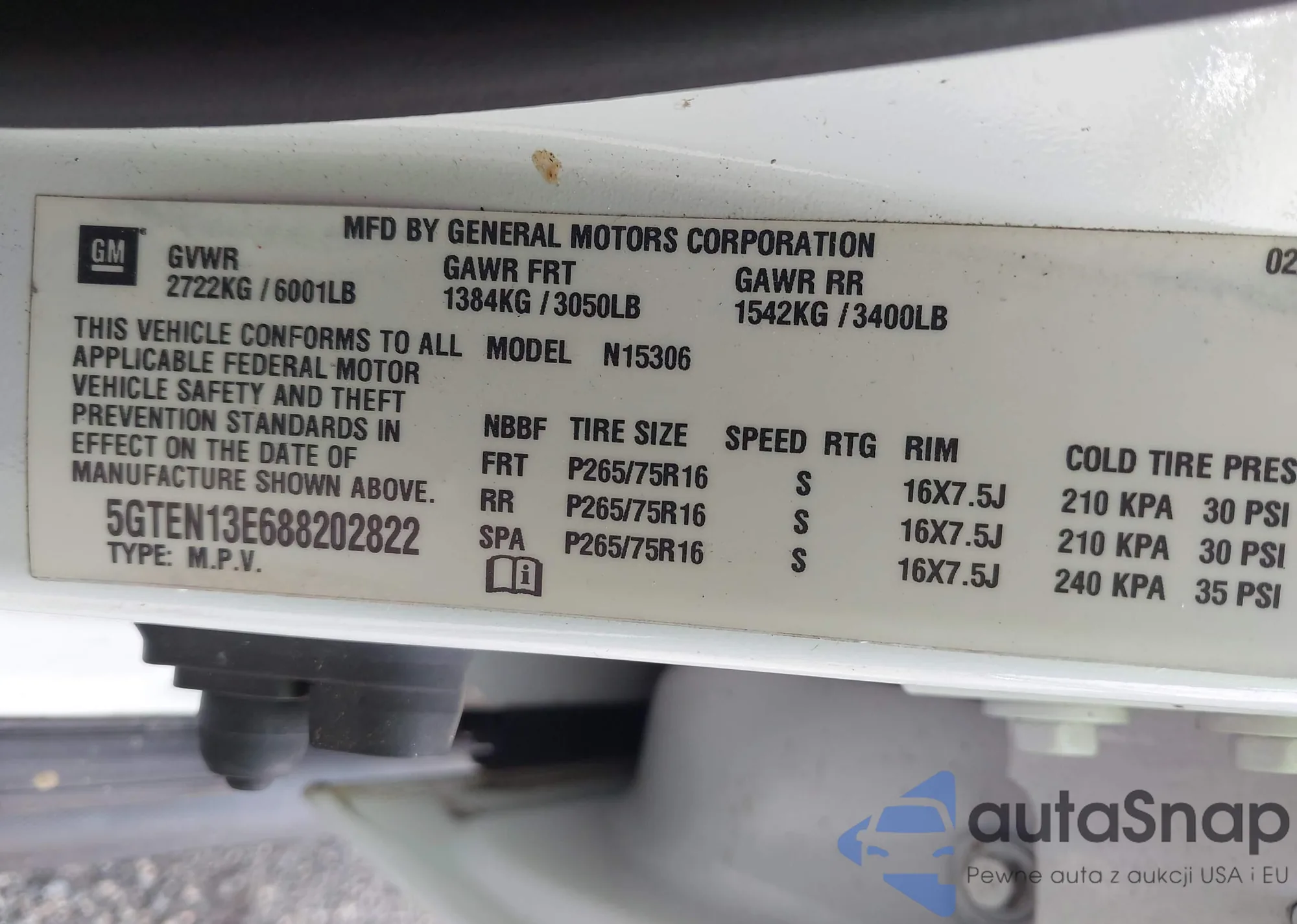 • VIN 1G6KD52B7SU202177