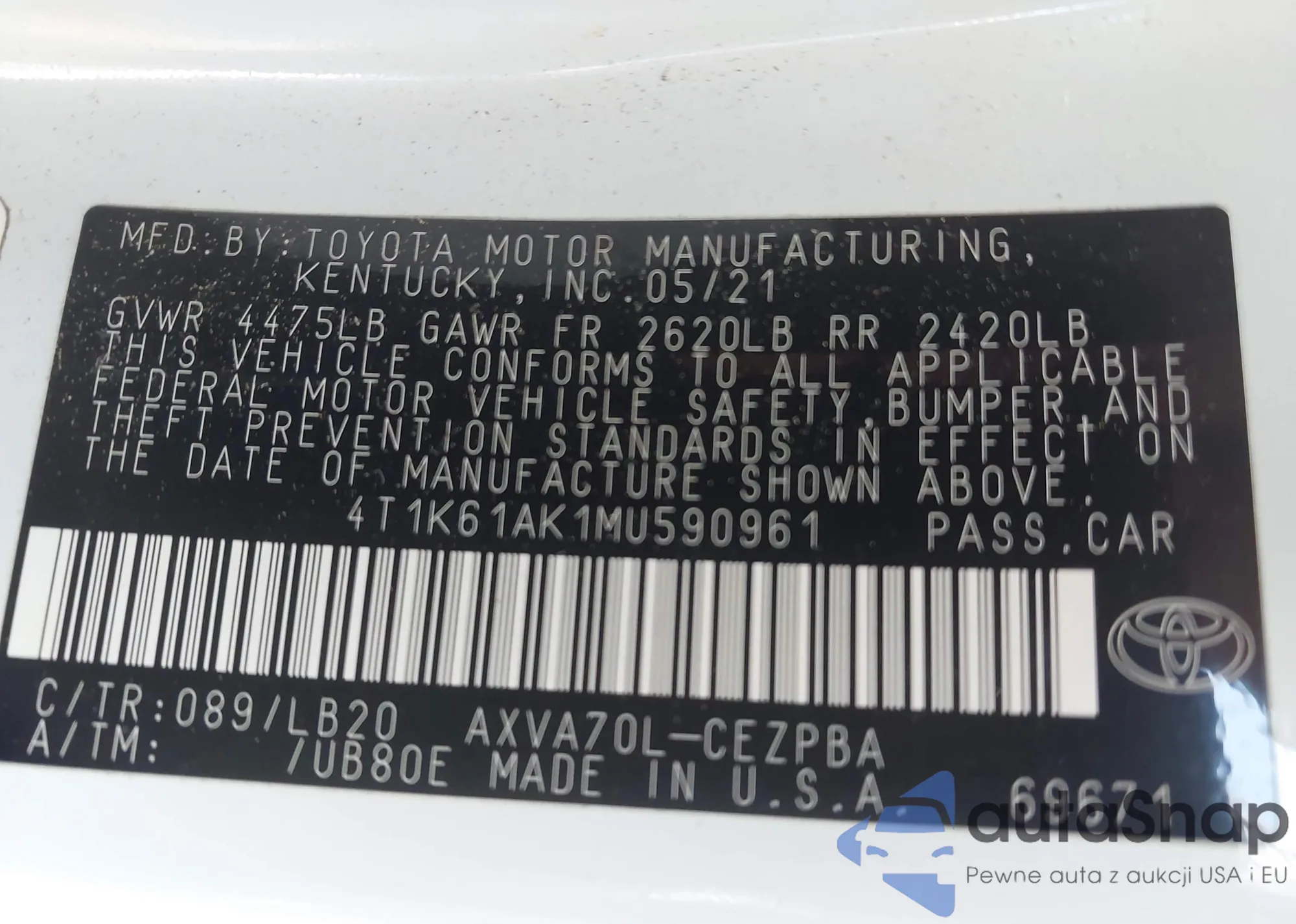 LOT: 43063391 VIN: 1HGCP3F89AA020204