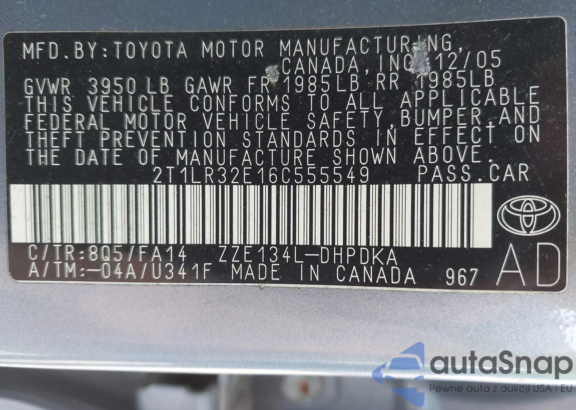 • VIN 1HGCP3F89AA020204
