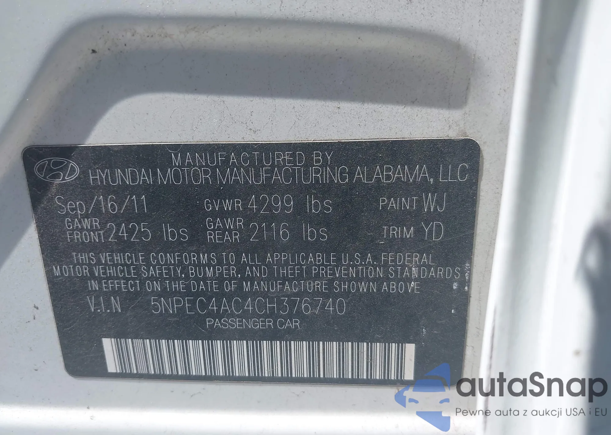 • VIN 5NPEC4AC4CH376740