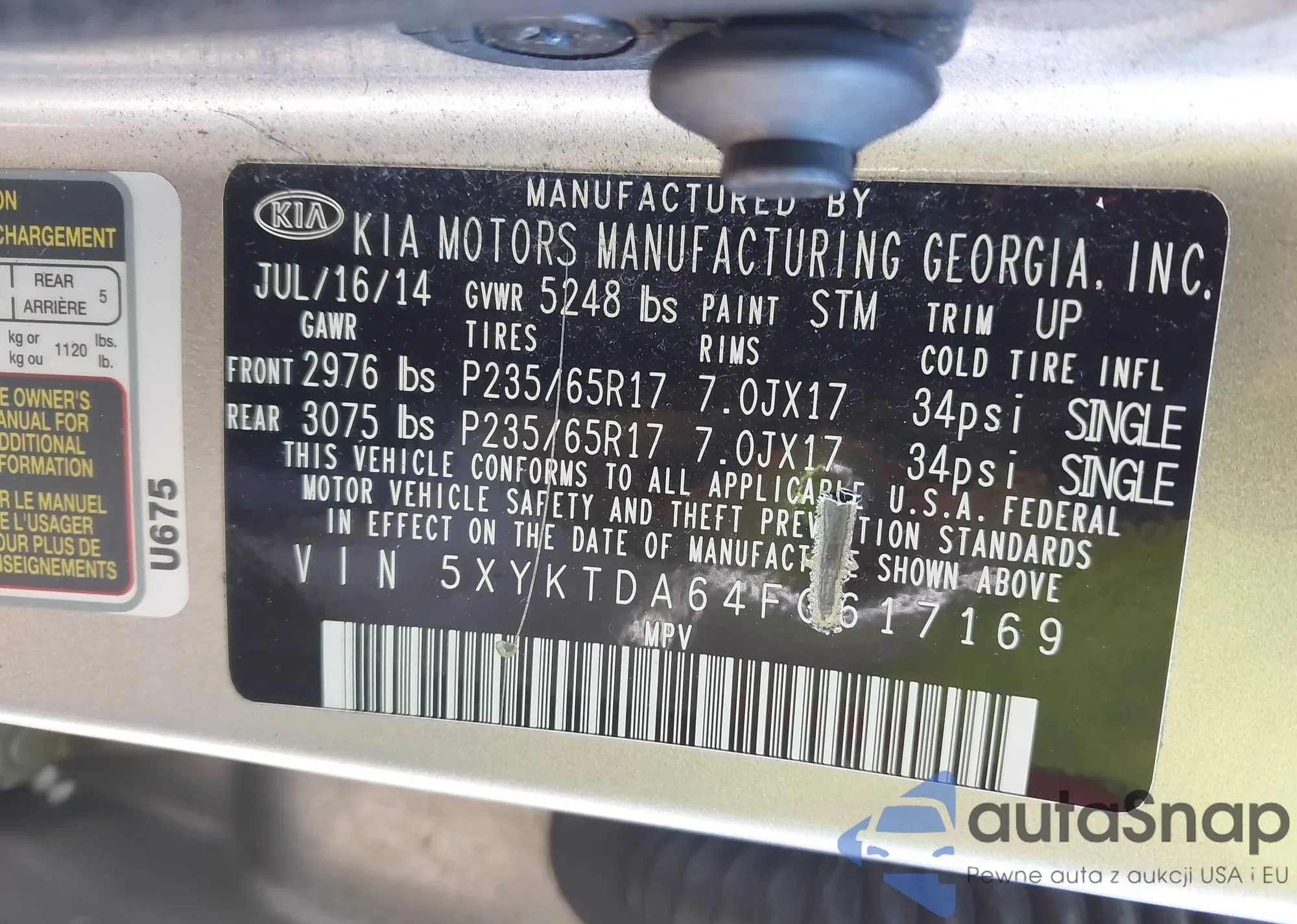 • VIN 5XYKTDA64FG617169