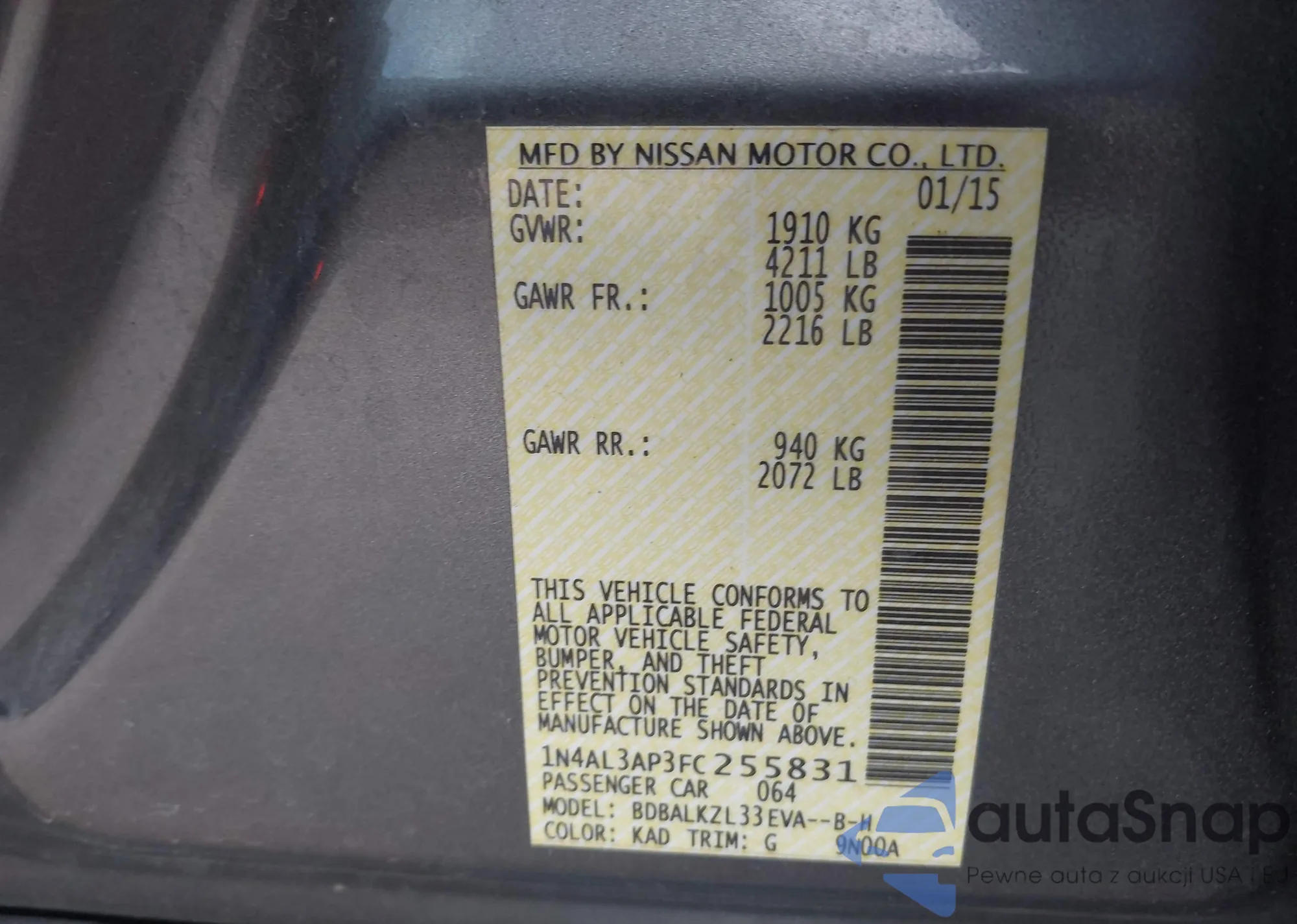 LOT: 42699991 VIN: 1N4AL3AP3FC255831