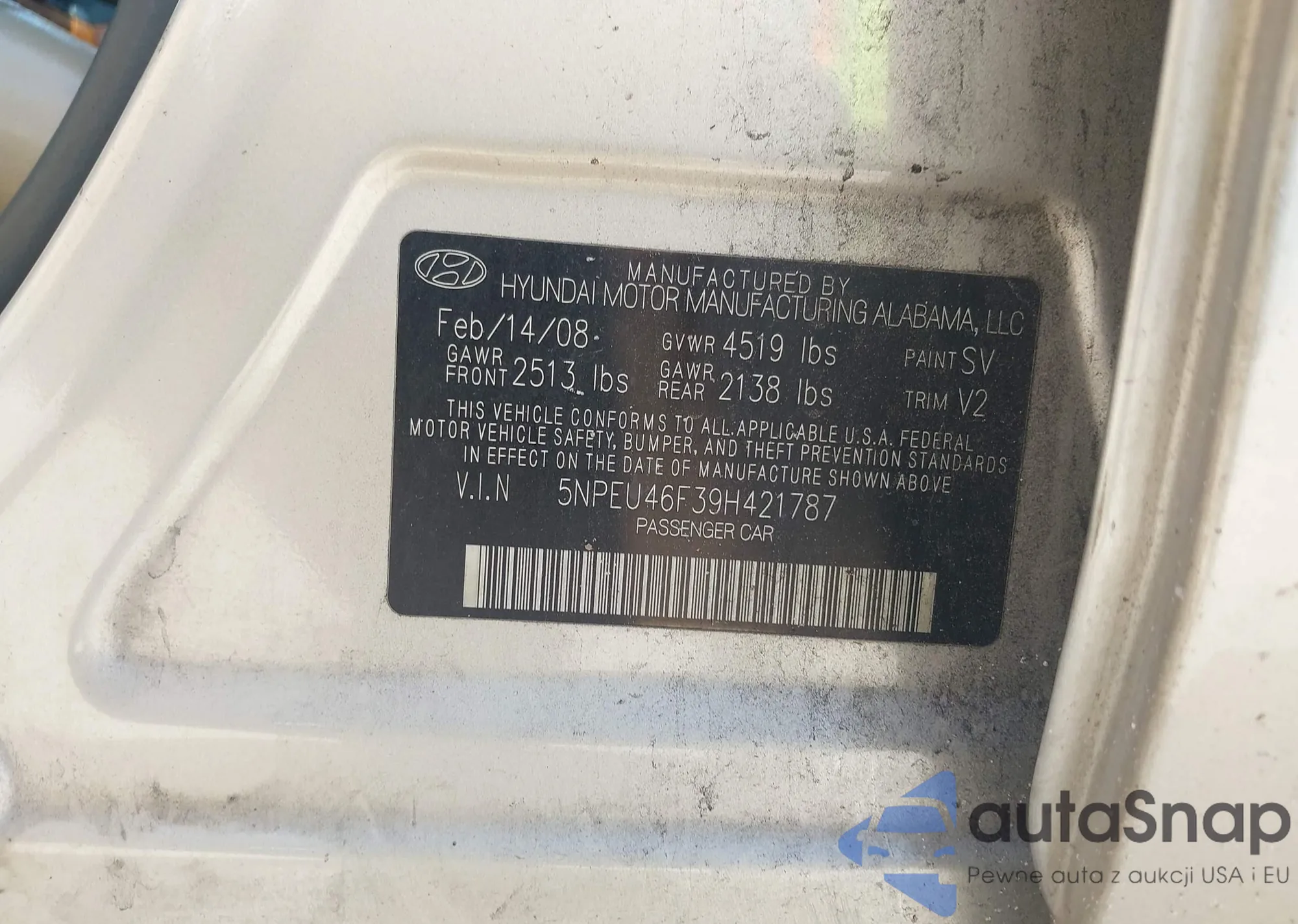 • VIN 5NPEU46F39H421787