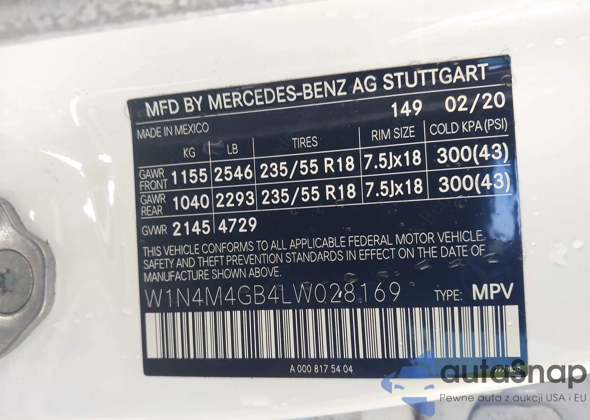 • VIN W1N4M4GB4LW028169
