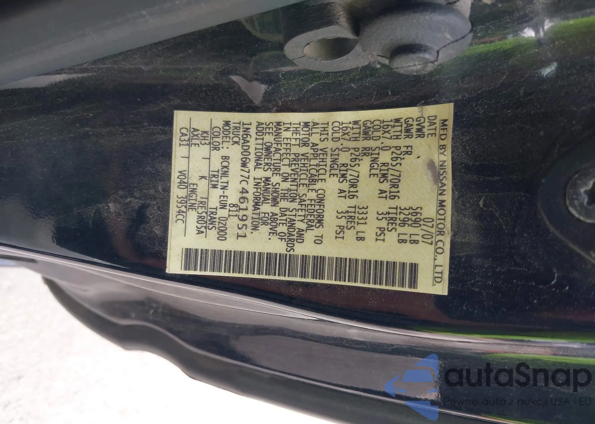• VIN 1N6AD06W77C461951
