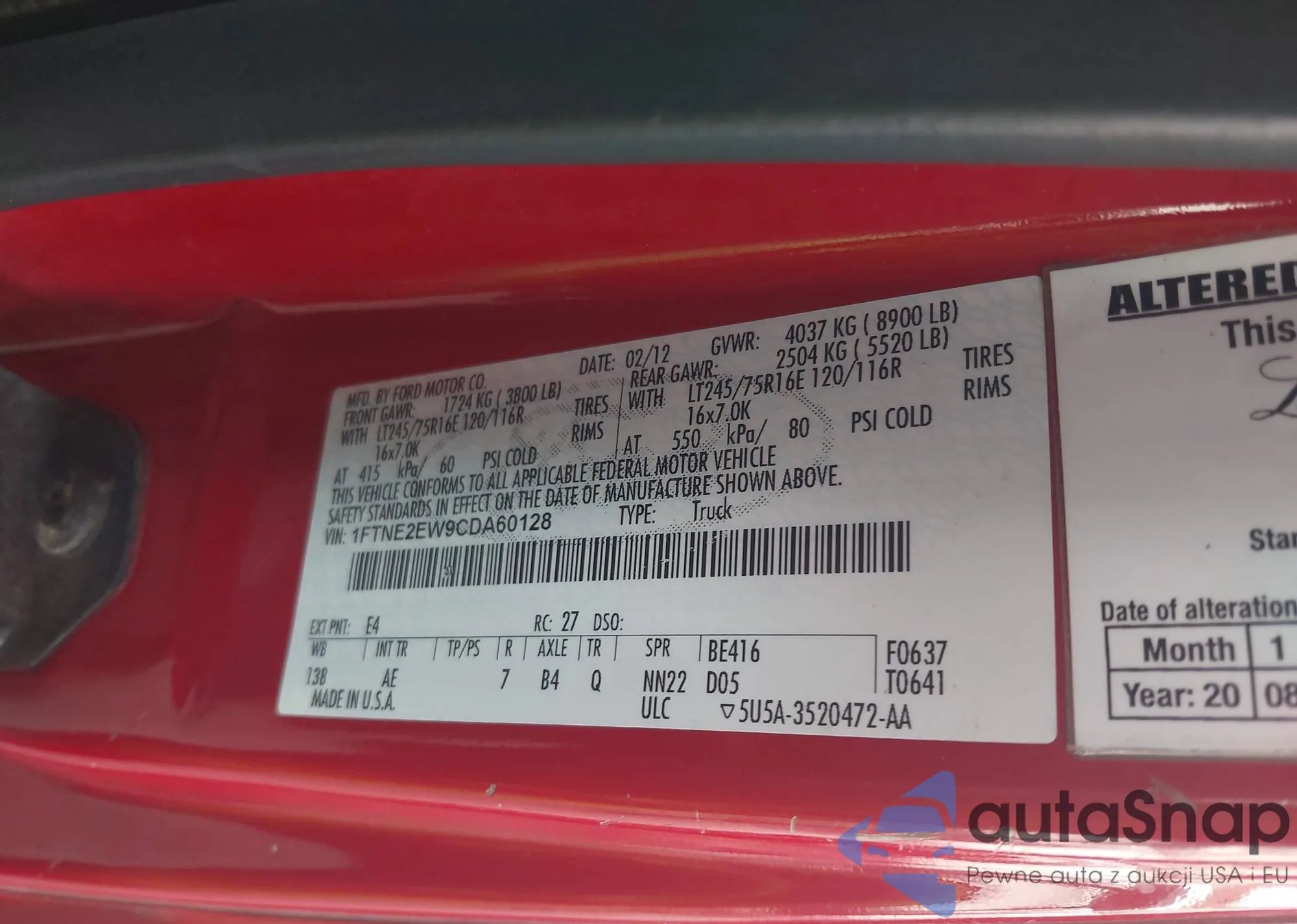 • VIN 1FTNE2EW9CDA60128