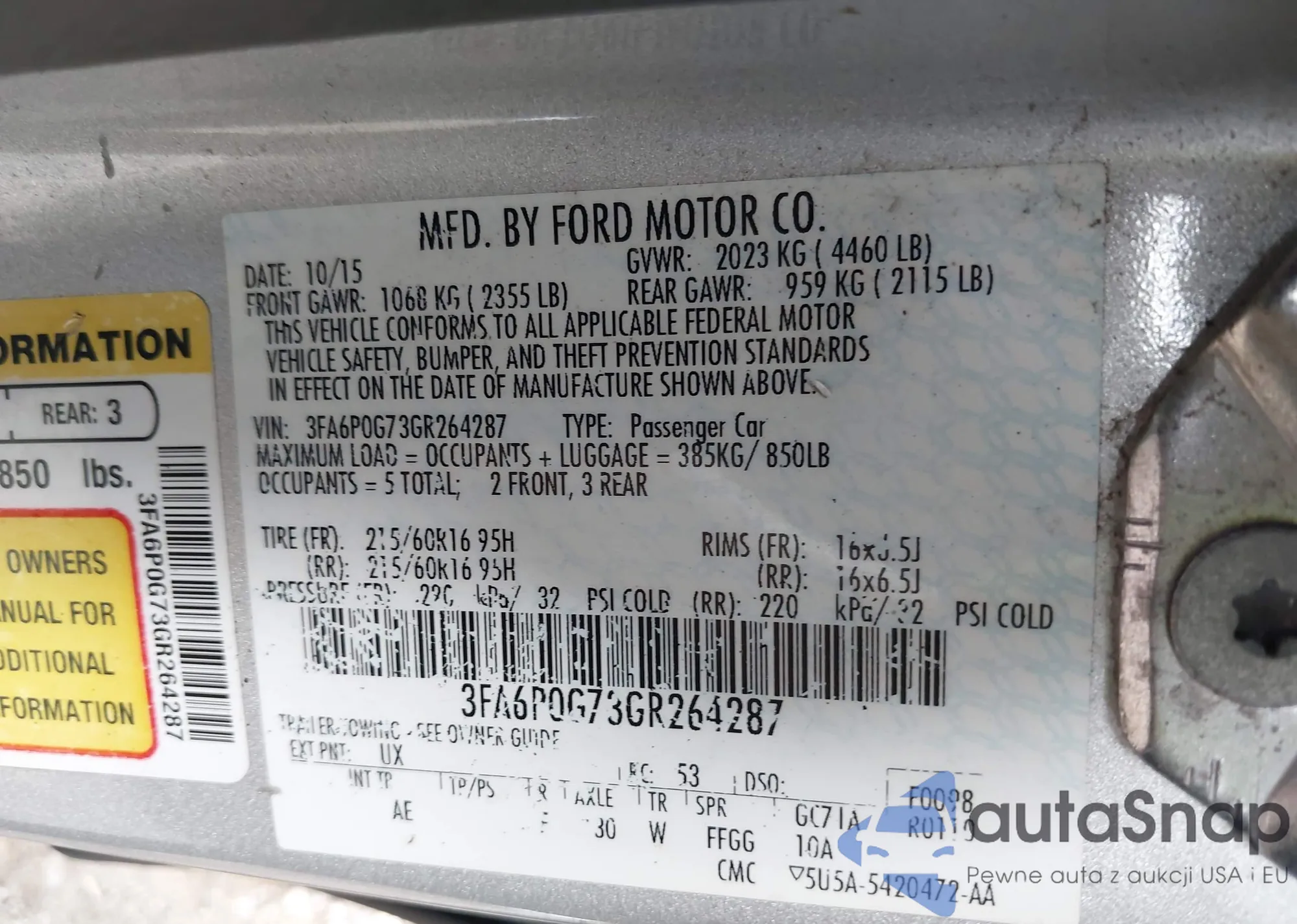 • VIN 3FA6P0G73GR264287