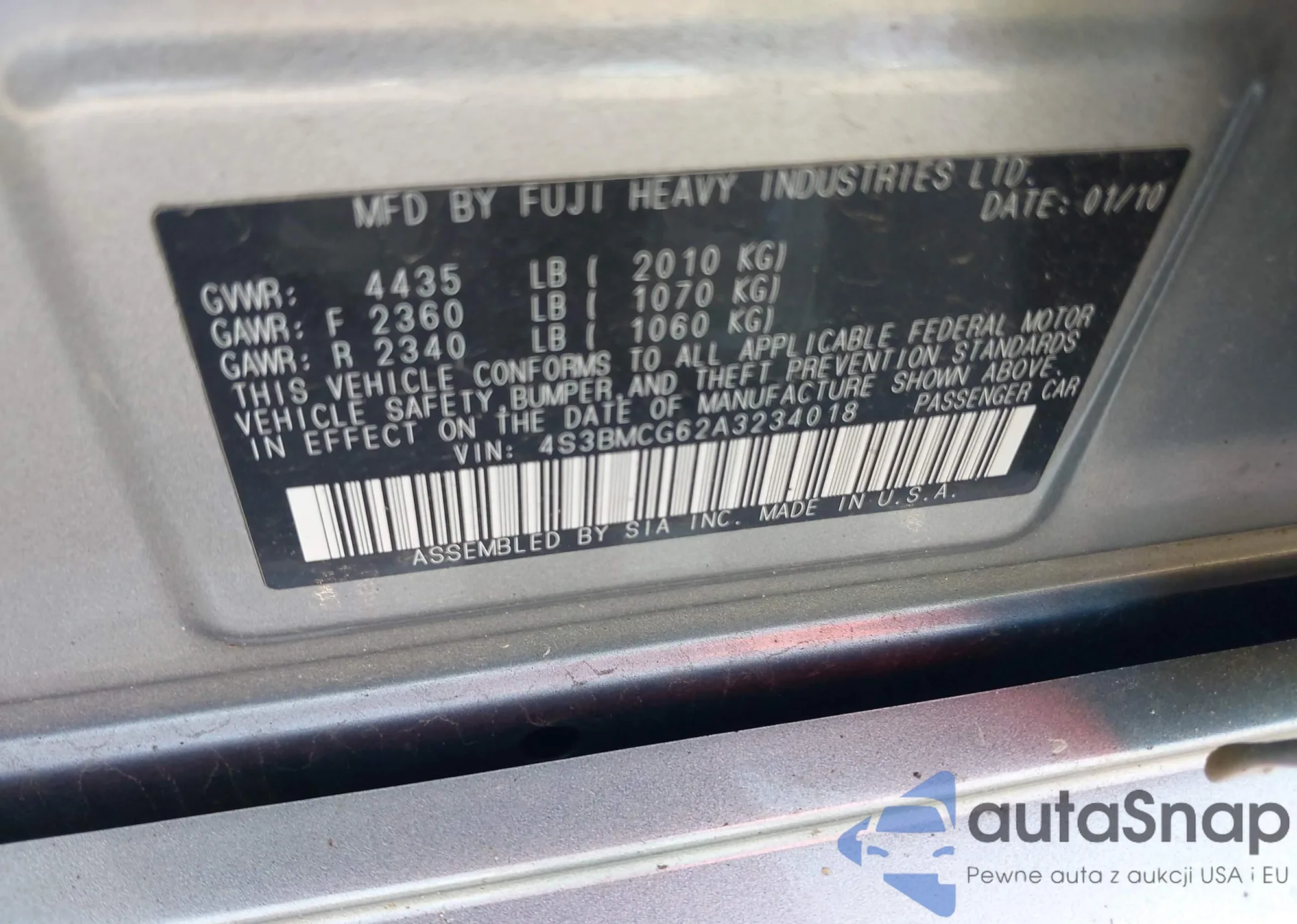 • VIN 4S3BMCG62A3234018