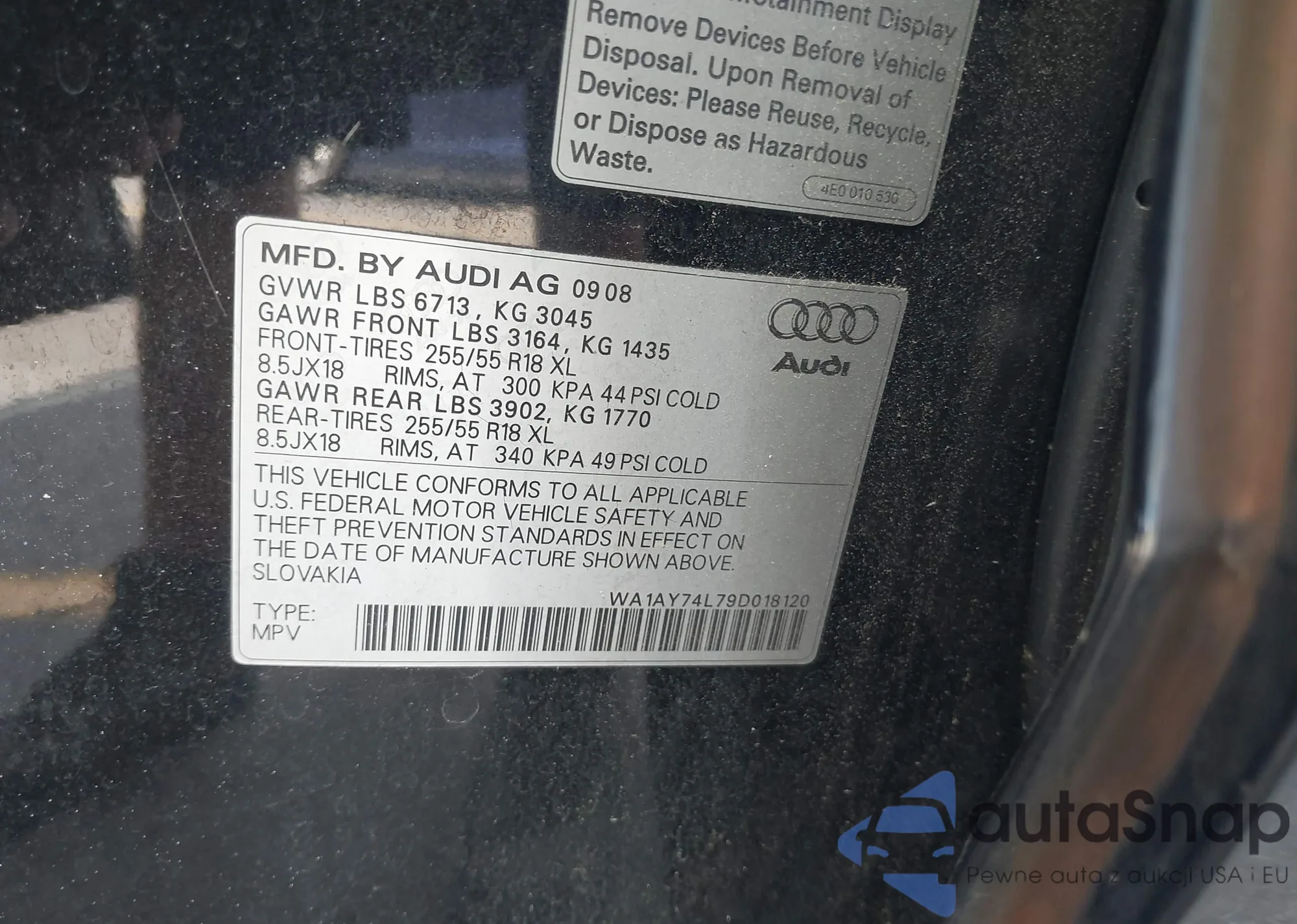LOT: 42931443 VIN: WA1AY74L79D018120