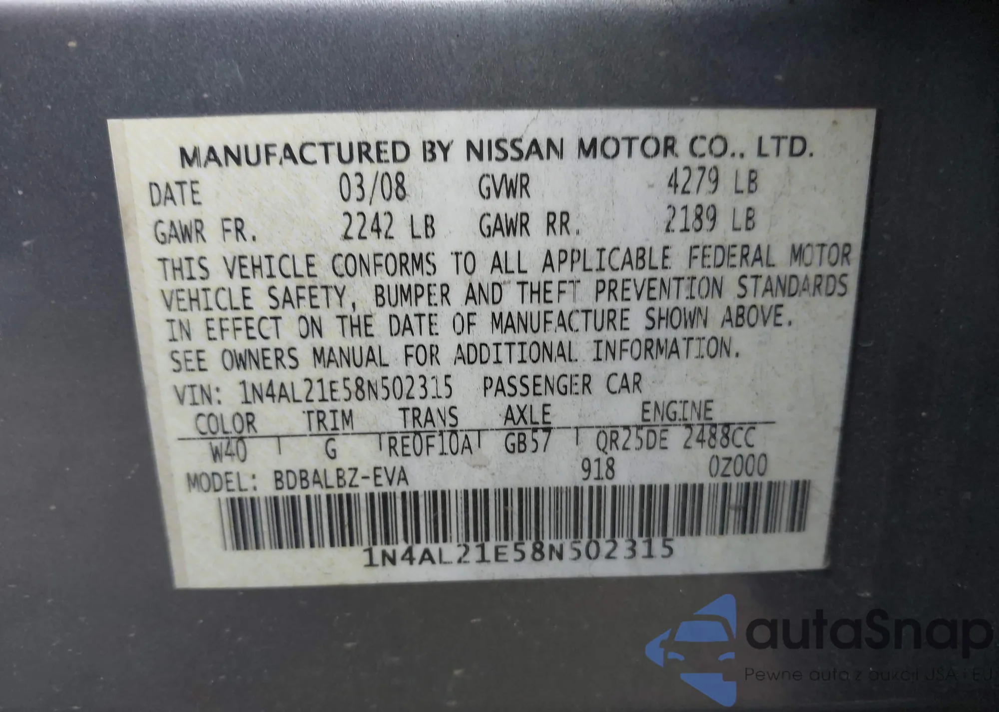 • VIN WBANE535X7CY07191