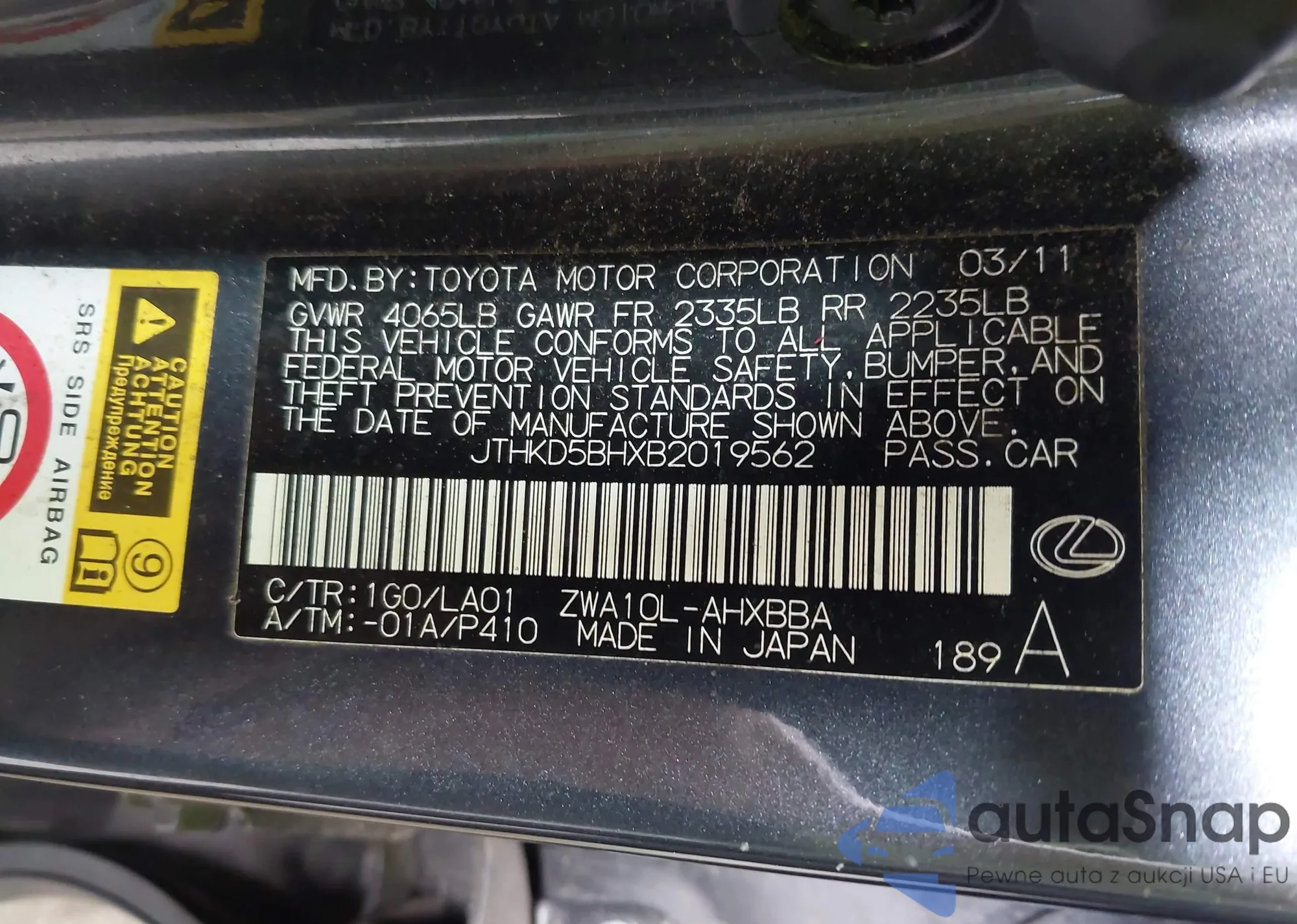 LOT: 43065881 VIN: JTHKD5BHXB2019562