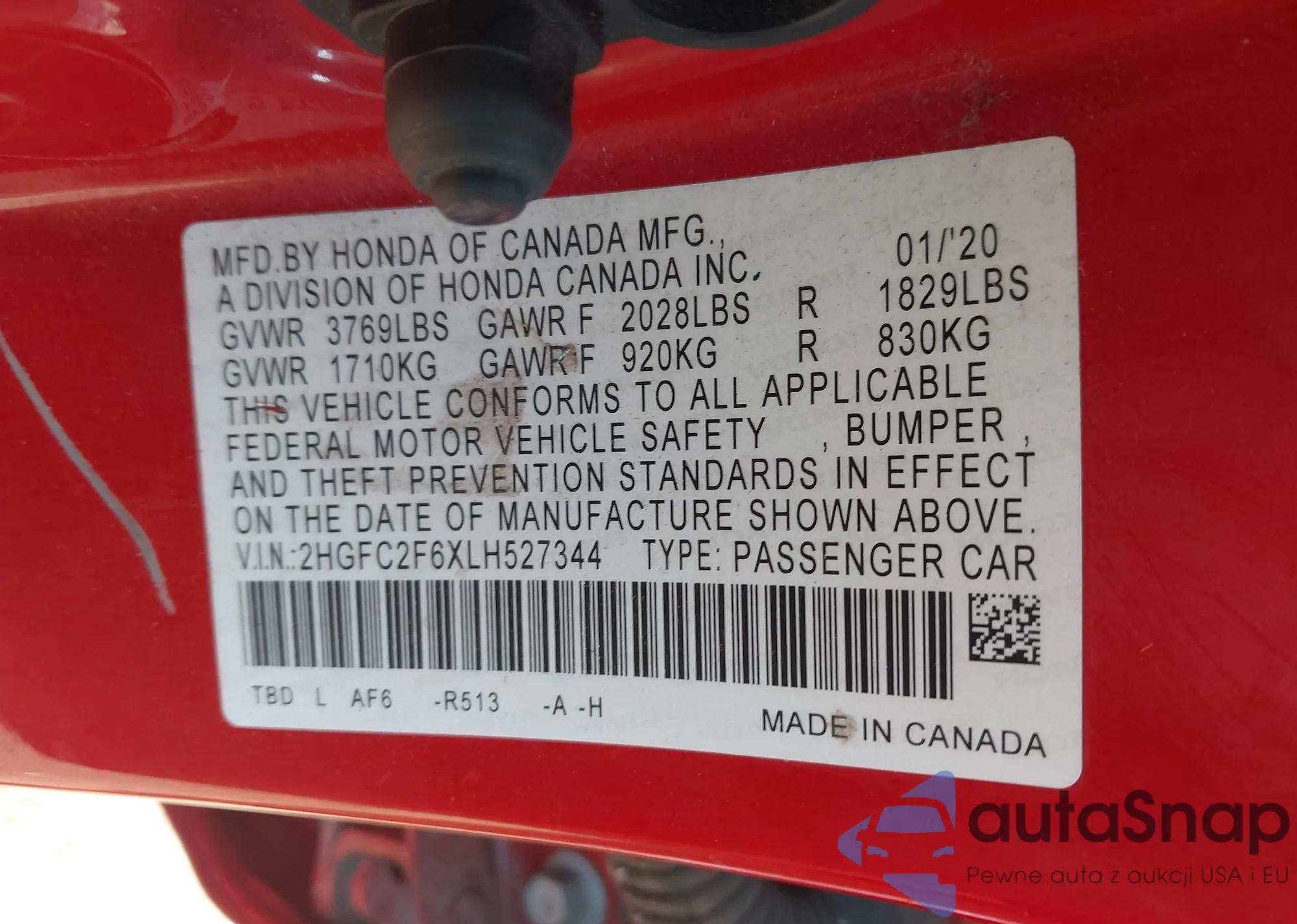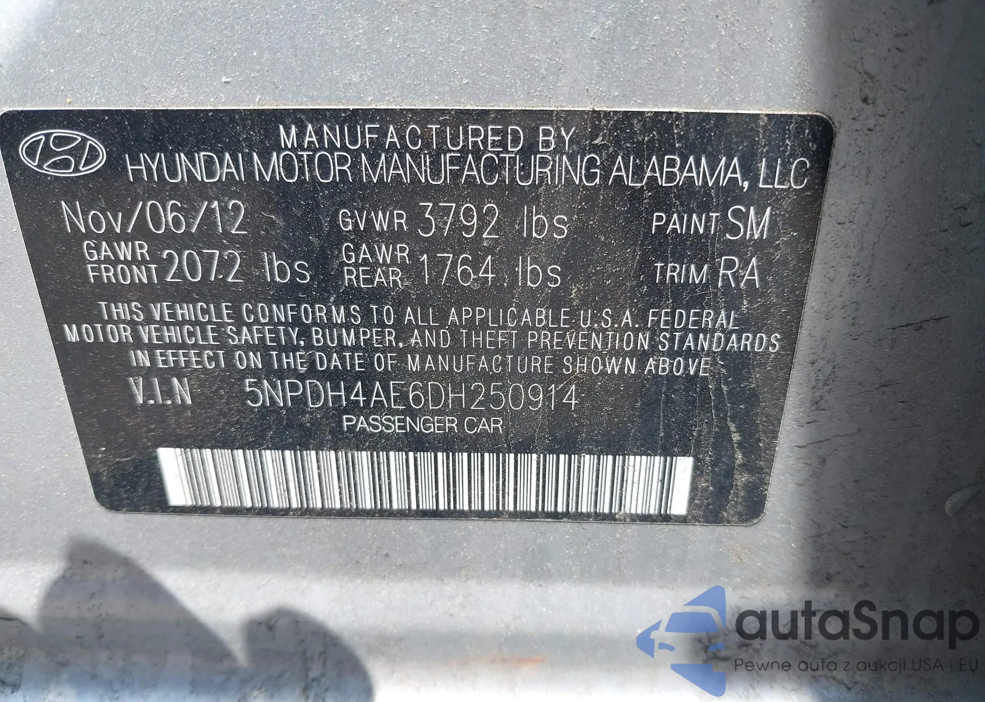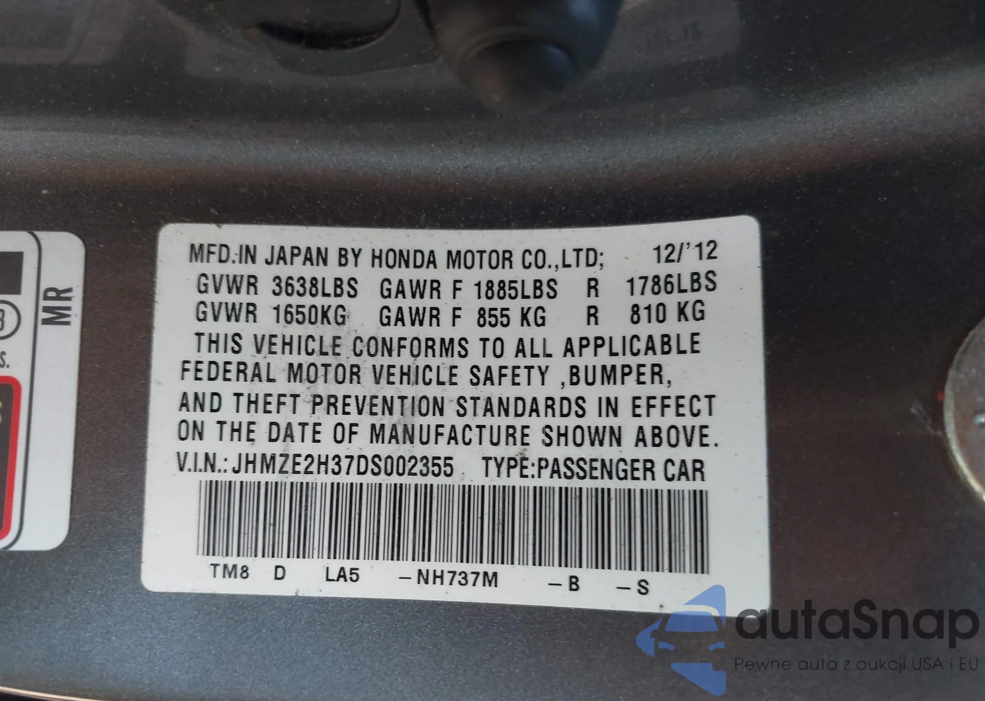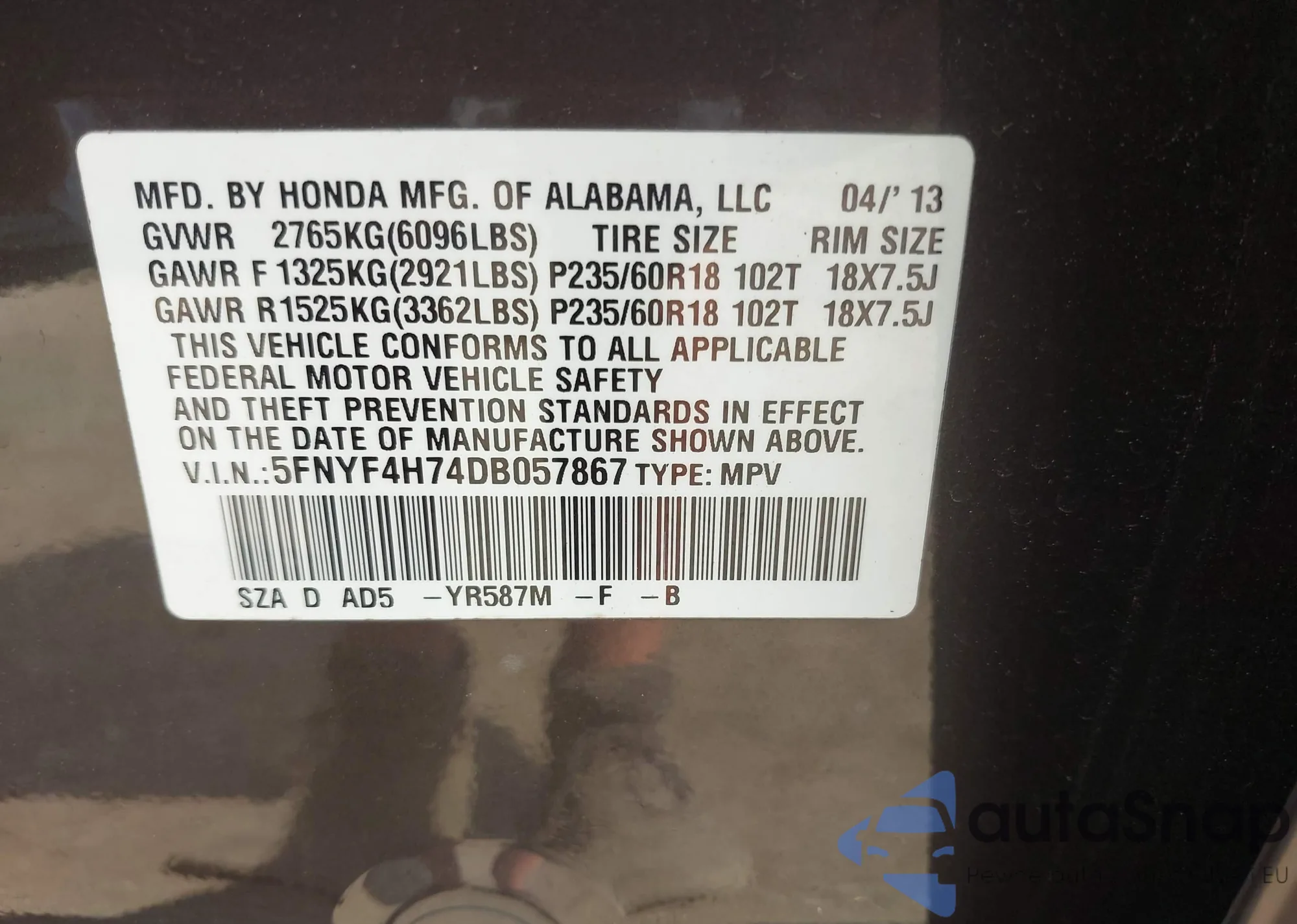 • VIN 5FNYF4H74DB057867