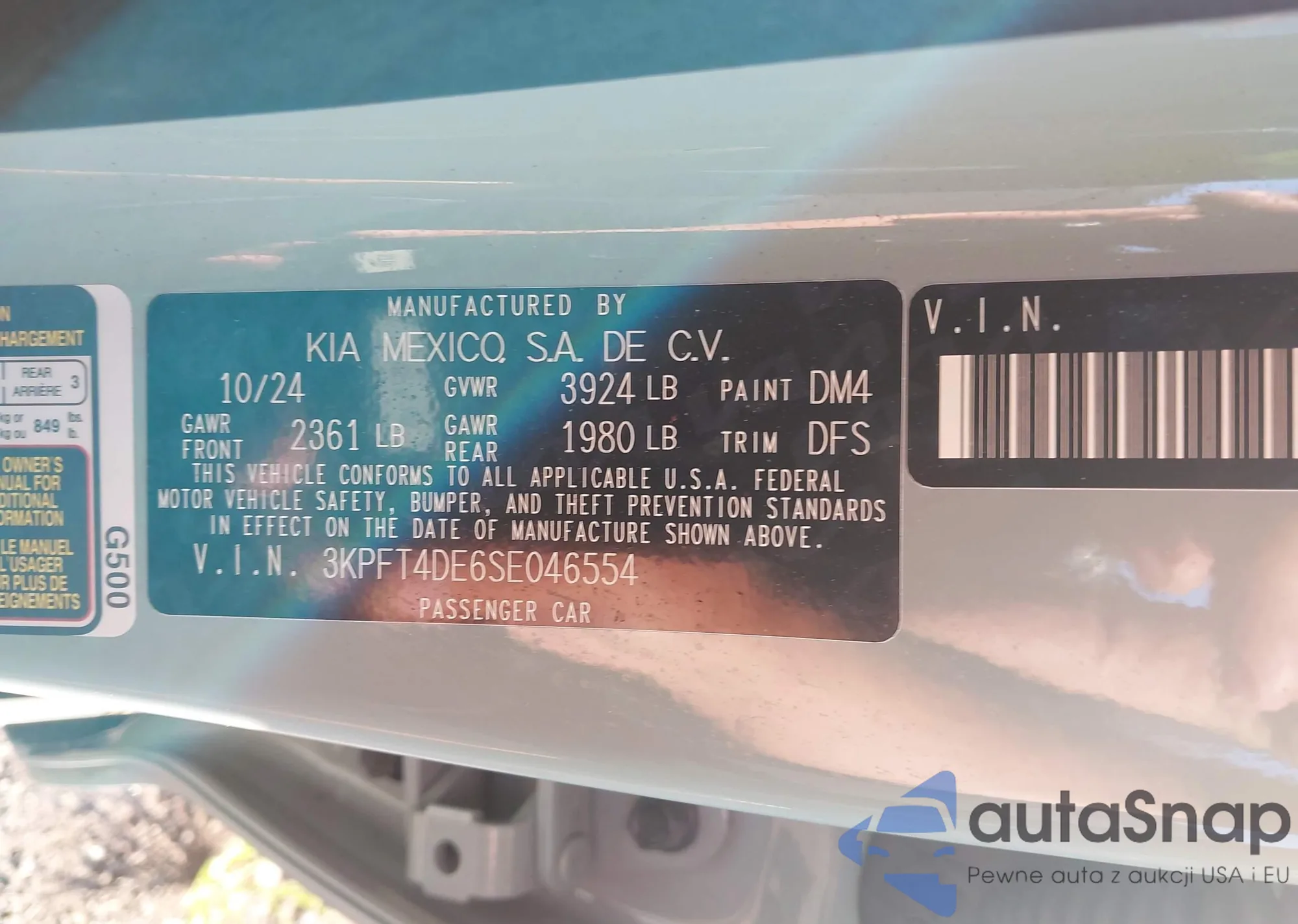 • VIN 3KPFT4DE6SE046554