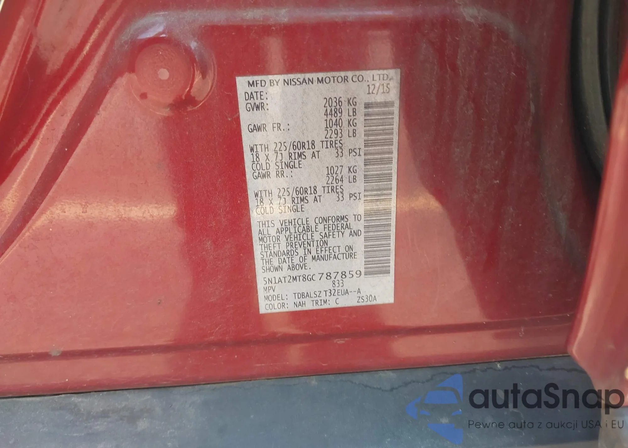 LOT: 42794834 VIN: 5N1AT2MT8GC787859