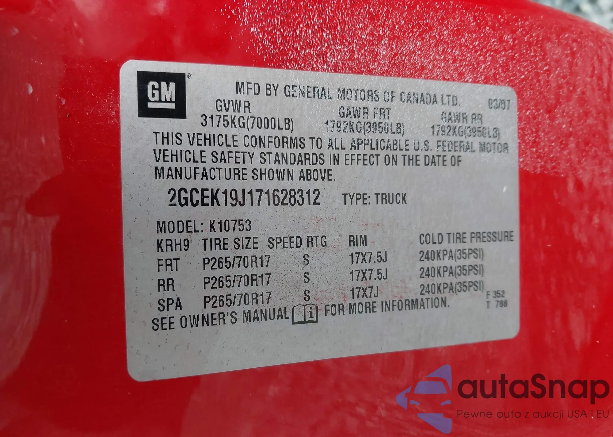 • VIN 2GCEK19J171628312