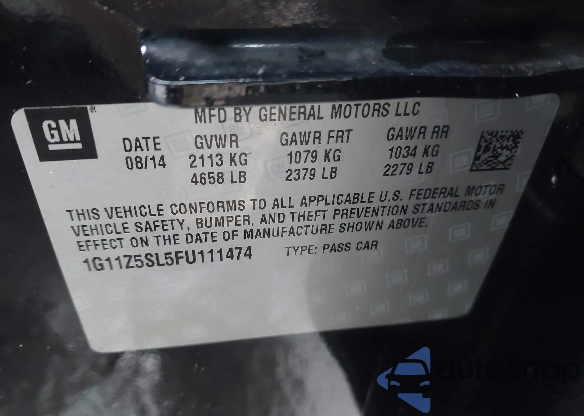 • VIN 1G11Z5SL5FU111474