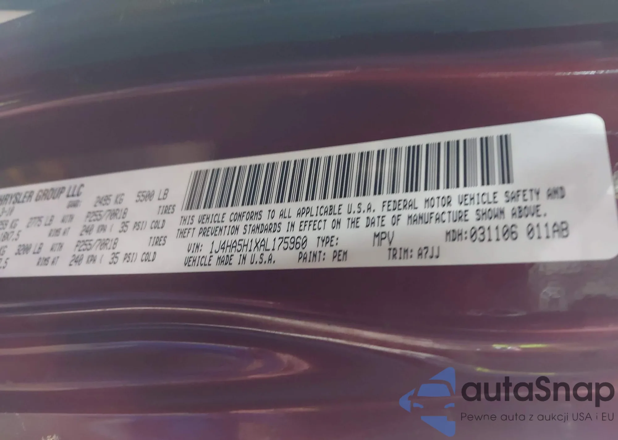 • VIN 1J4HA5H1XAL175960