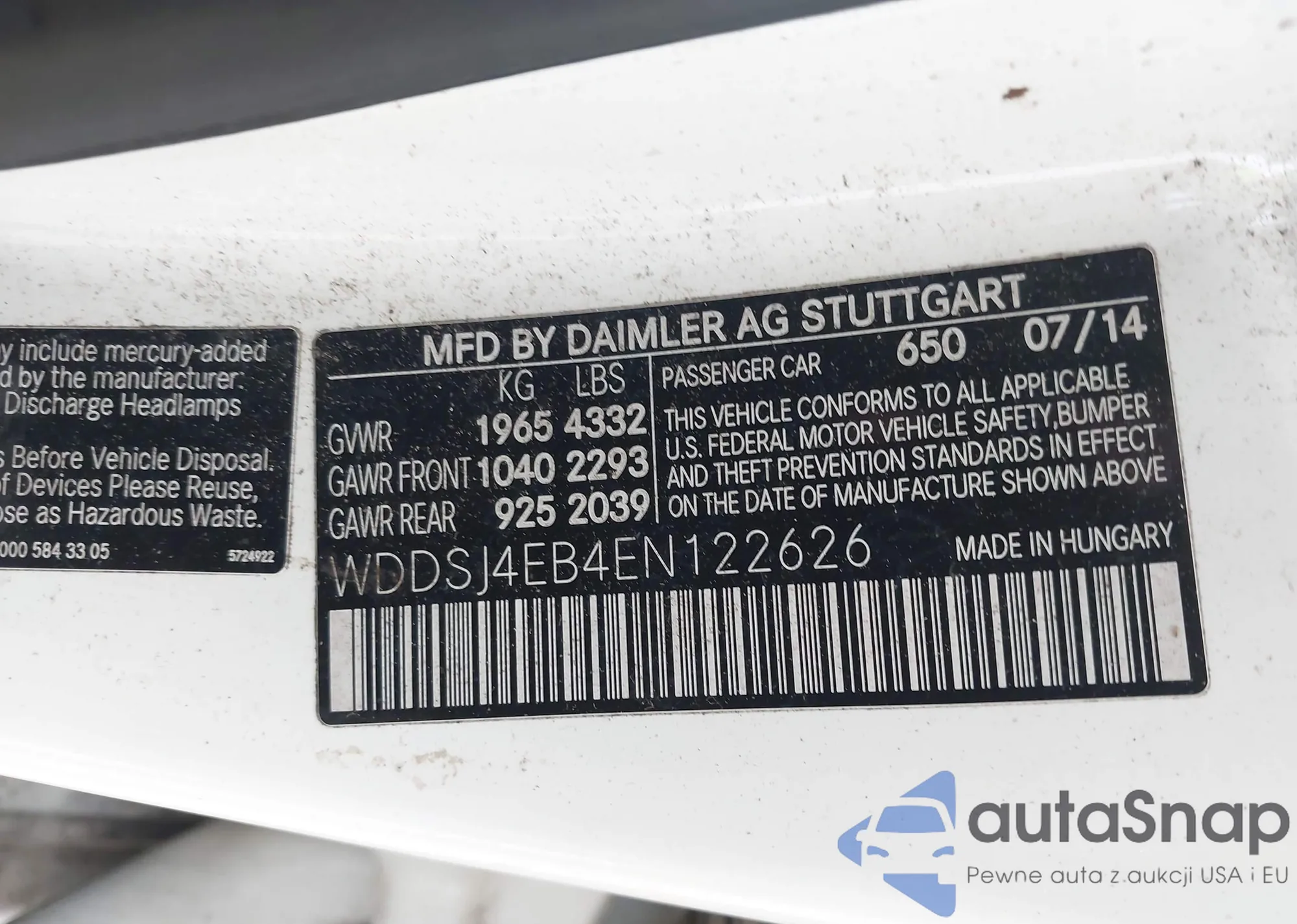 LOT: 42911674 VIN: WMEEJ3BA1FK810942