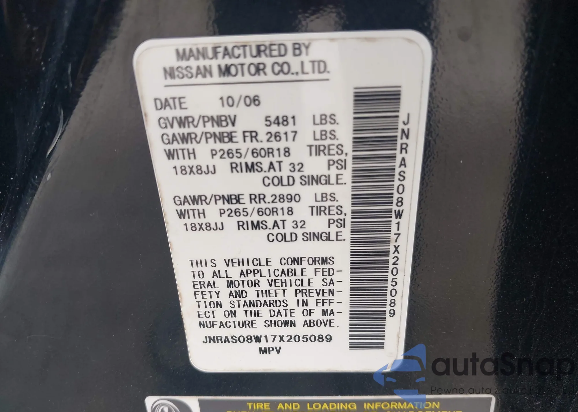 LOT: 42526144 VIN: JNRAS08W17X205089