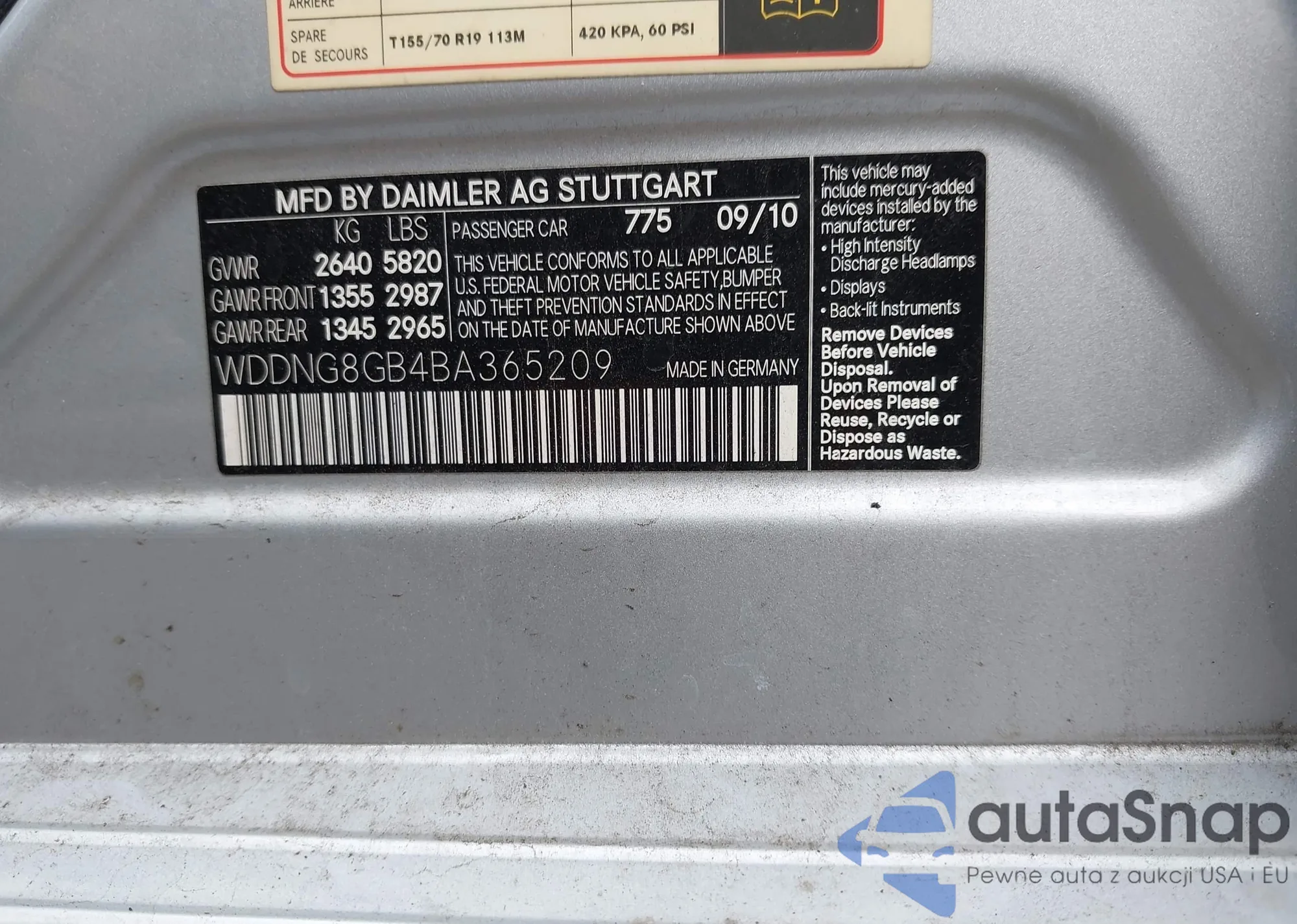 LOT: 42886152 VIN: WDDNG8GB4BA365209