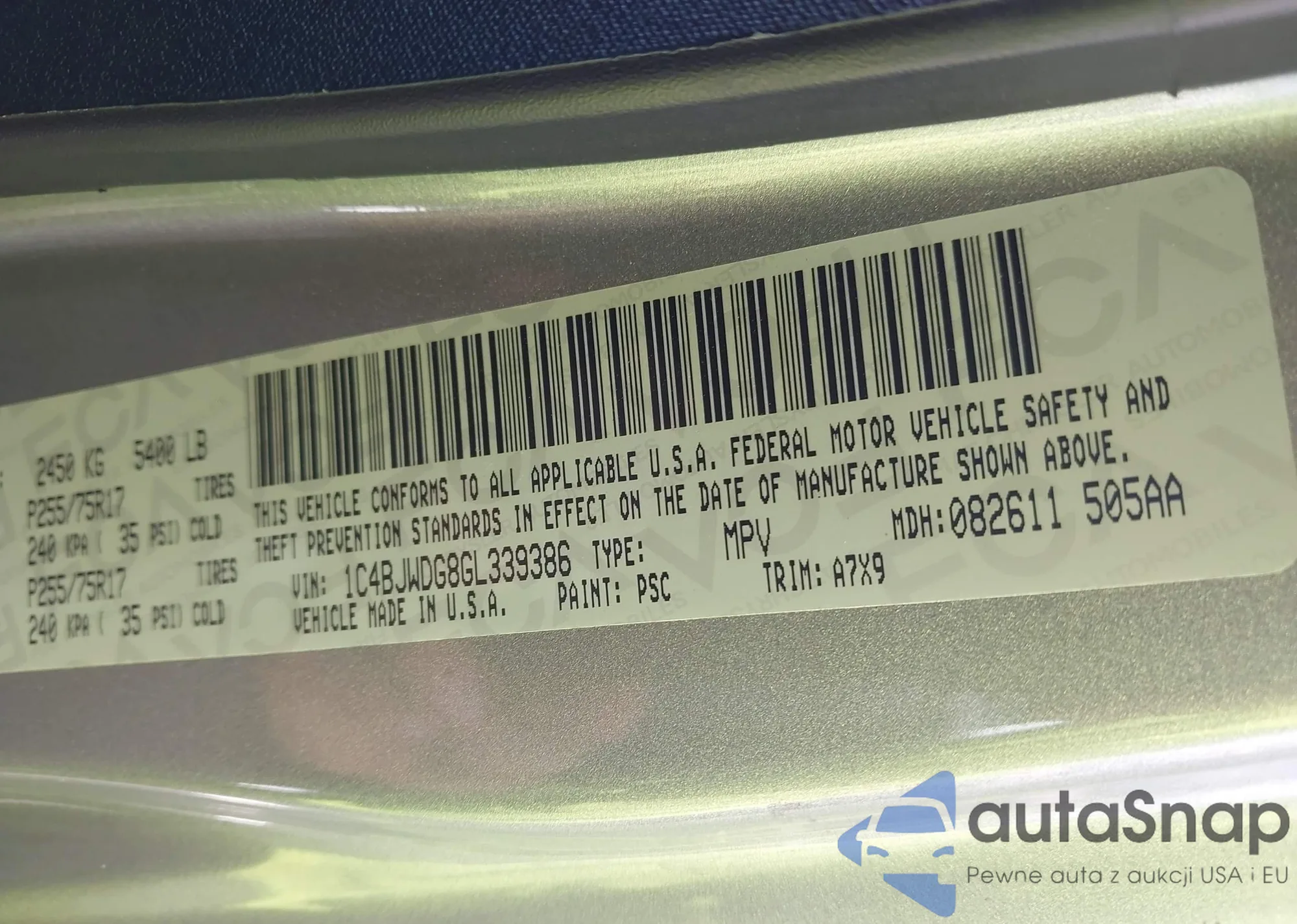 LOT: 42931088 VIN: 1C4PJLAK5CW145436
