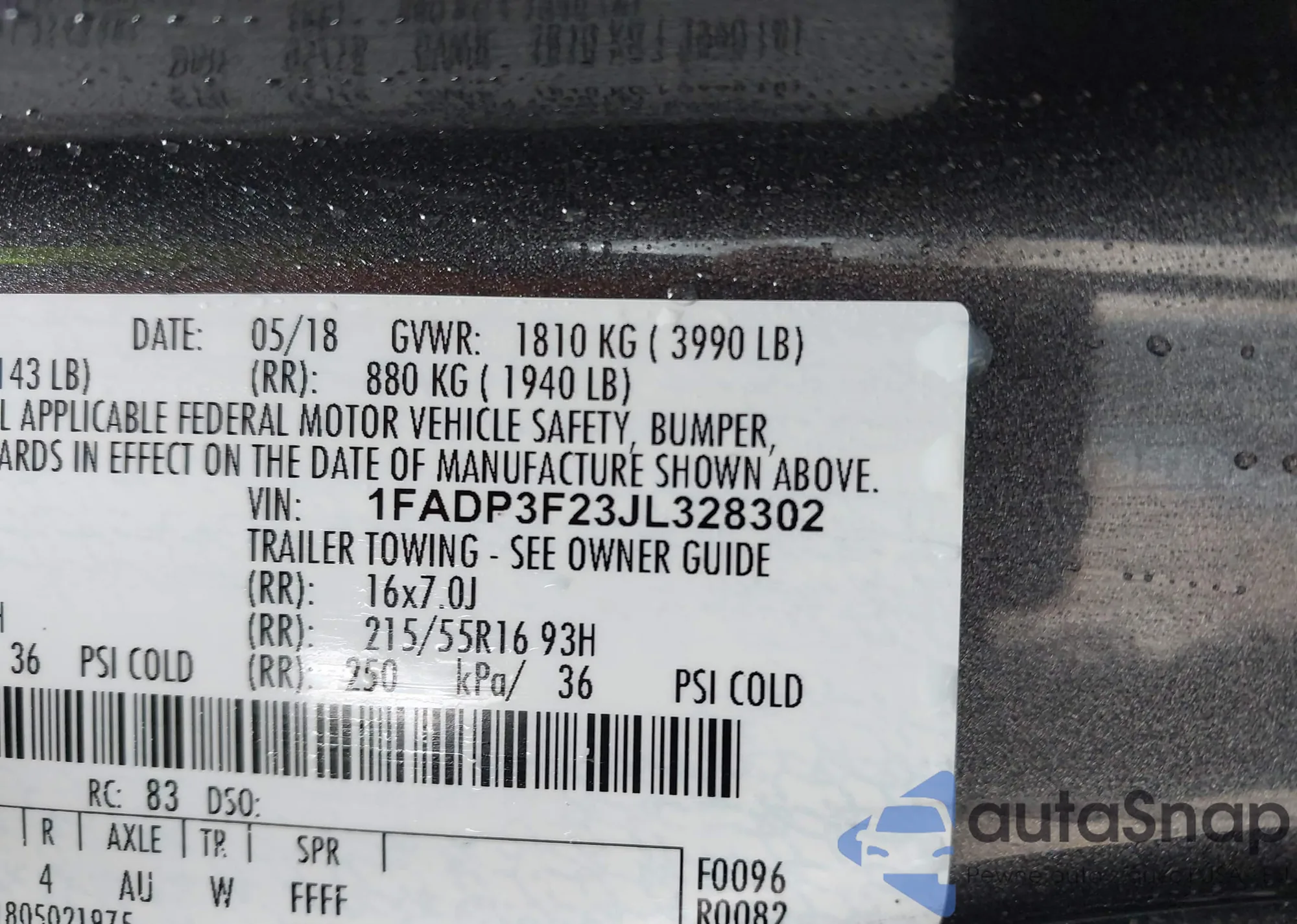 • VIN 1FADP3F23JL328302