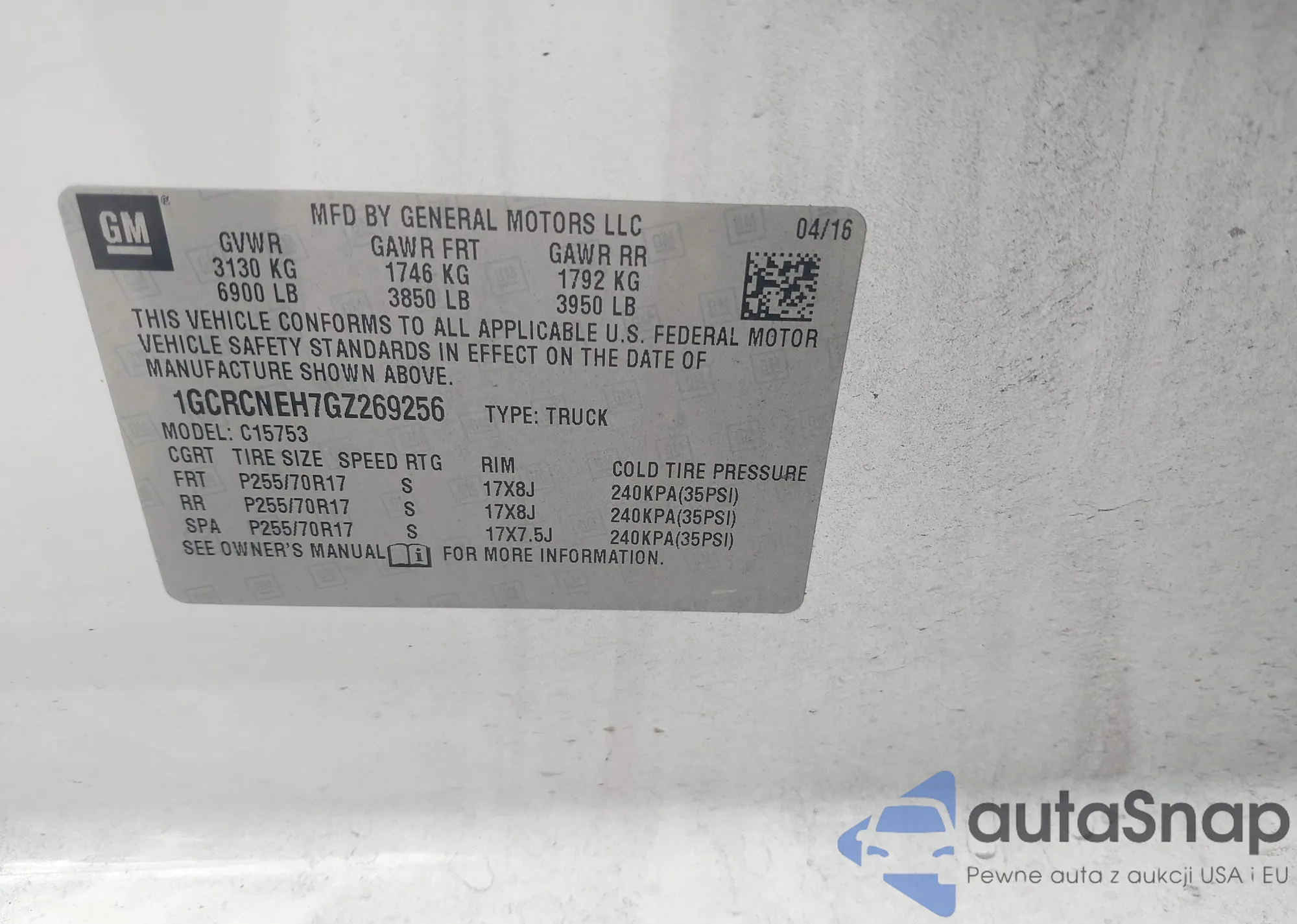 • VIN 1GCRCNEH7GZ269256
