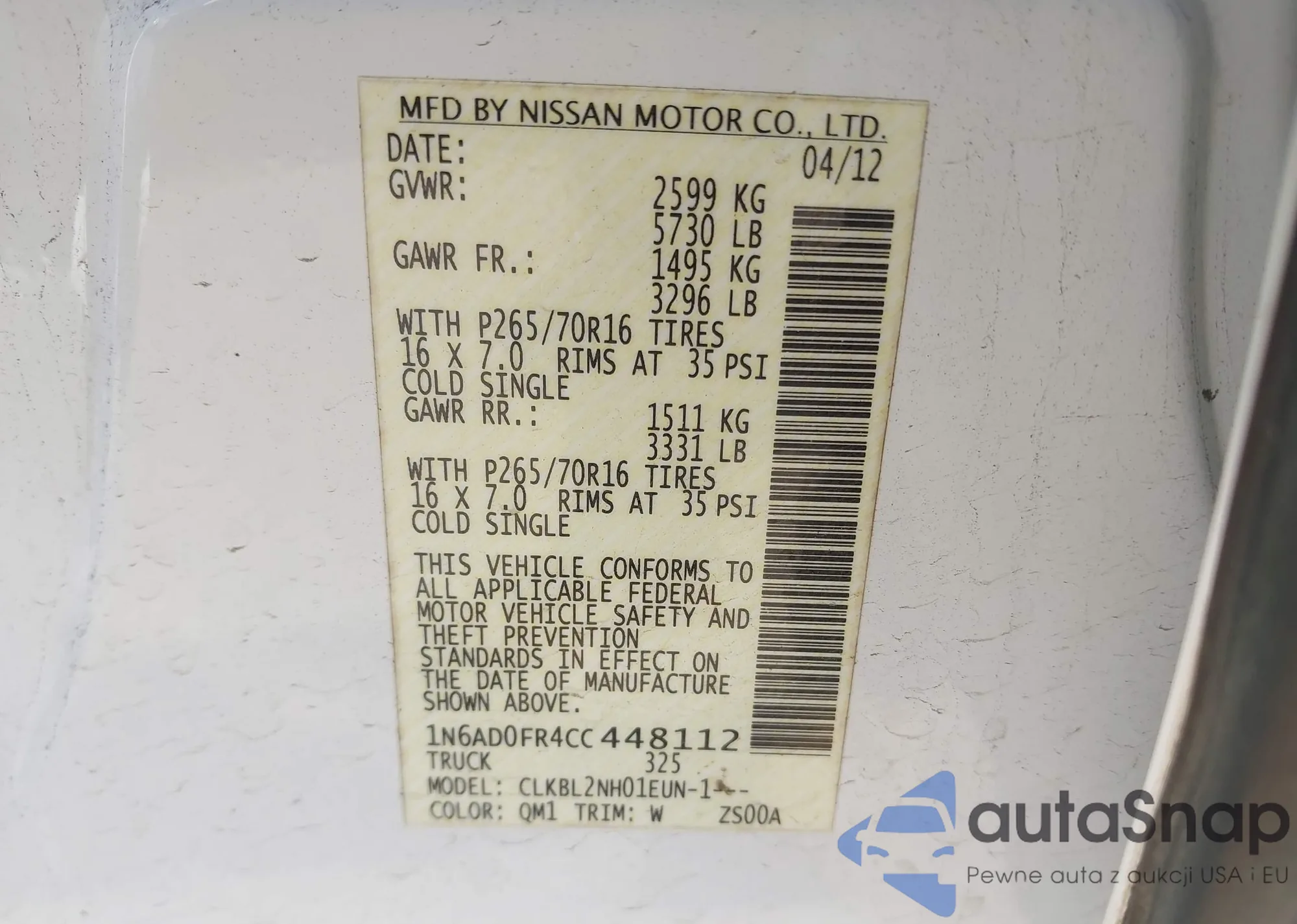 • VIN 5N1AL0MM8DC316786