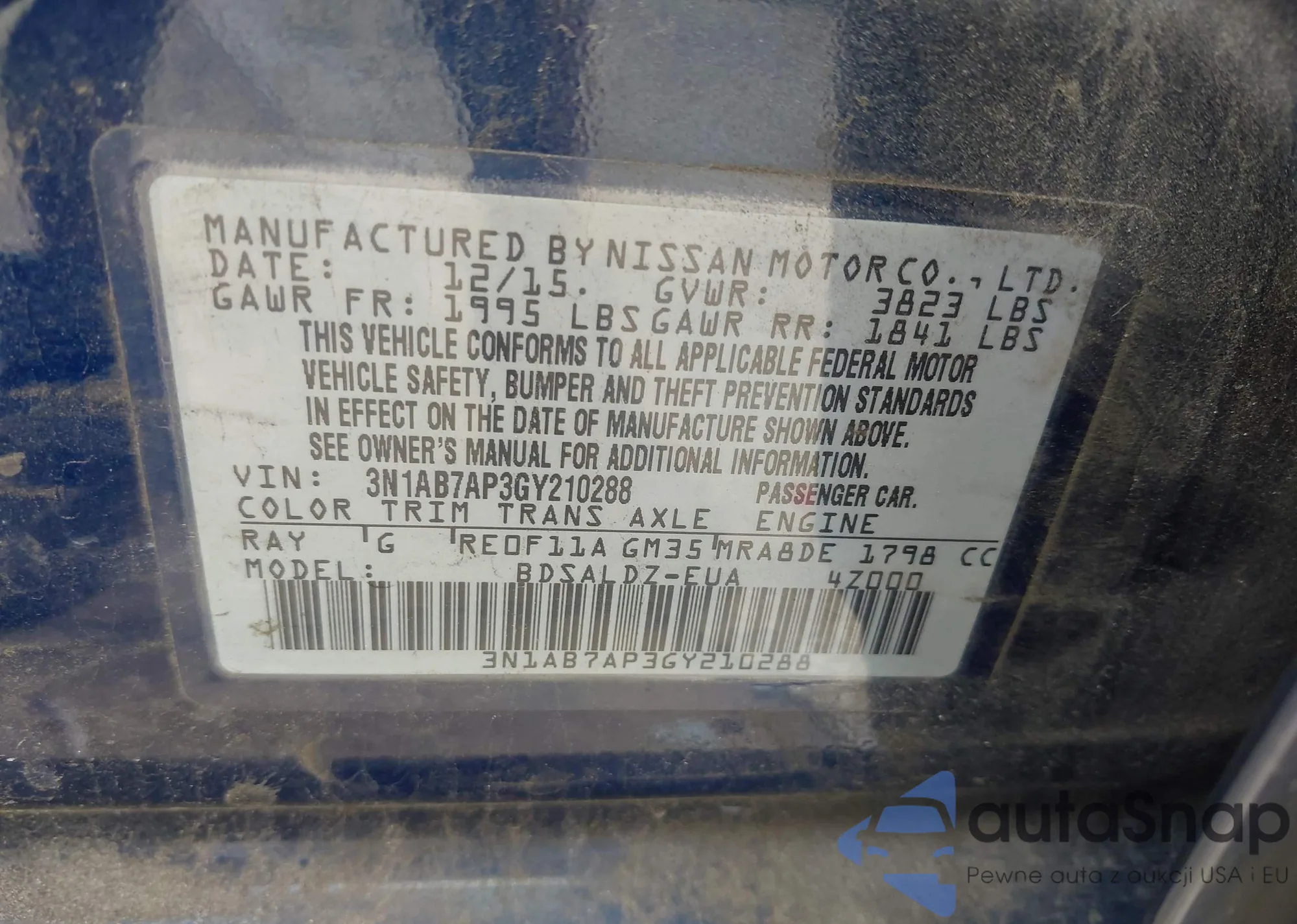 LOT: 43046492 VIN: 3N1AB7AP3GY210288