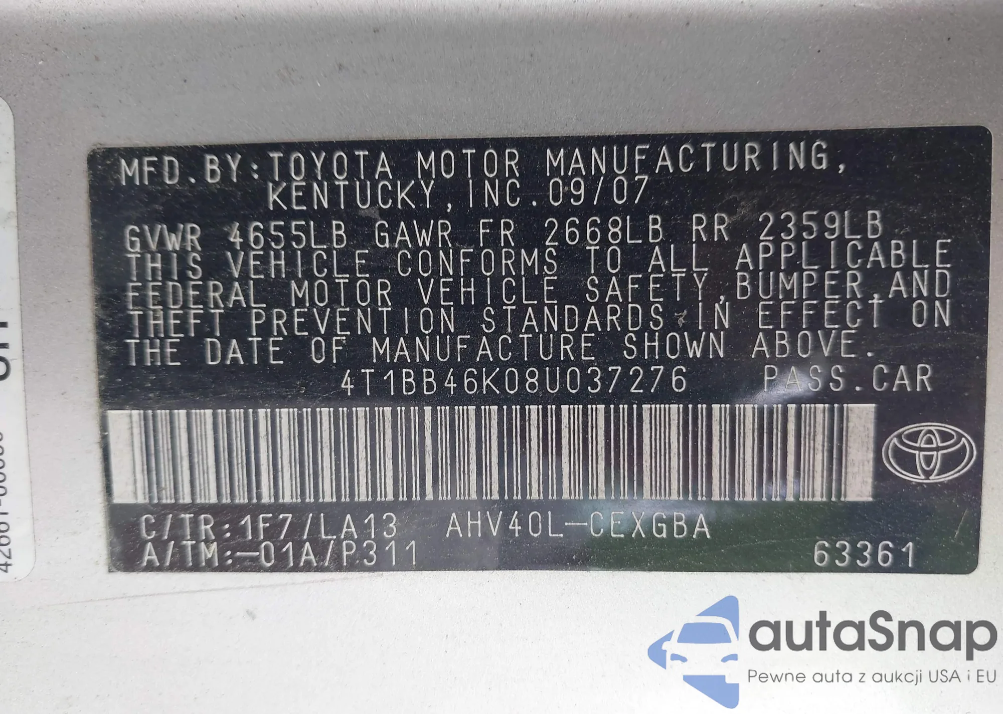 • VIN 4T1BB46K08U037276