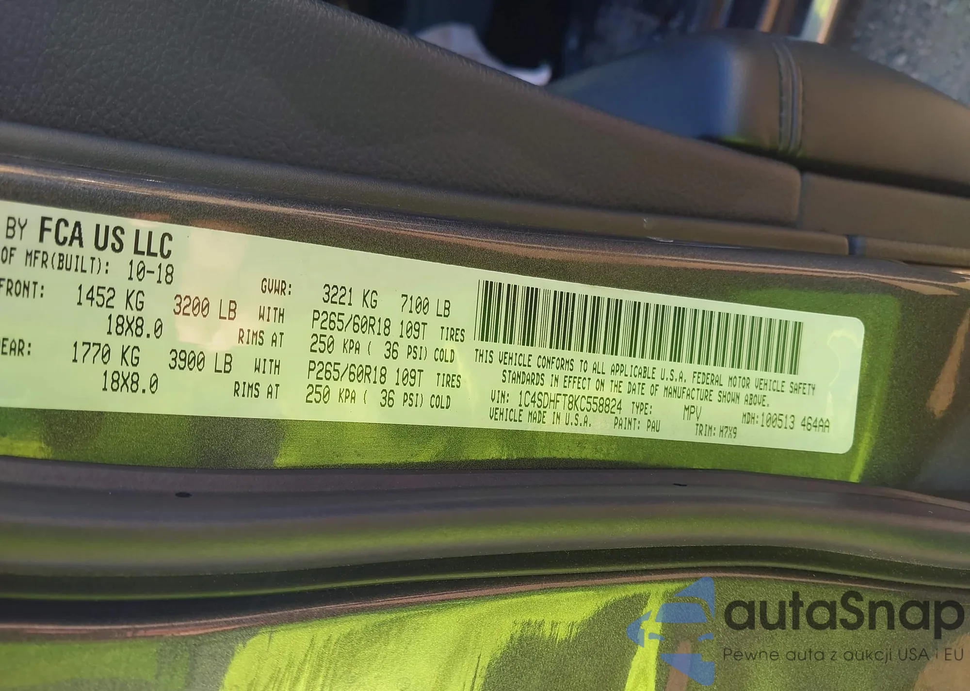 LOT: 42800049 VIN: 1C4SDHFT8KC558824