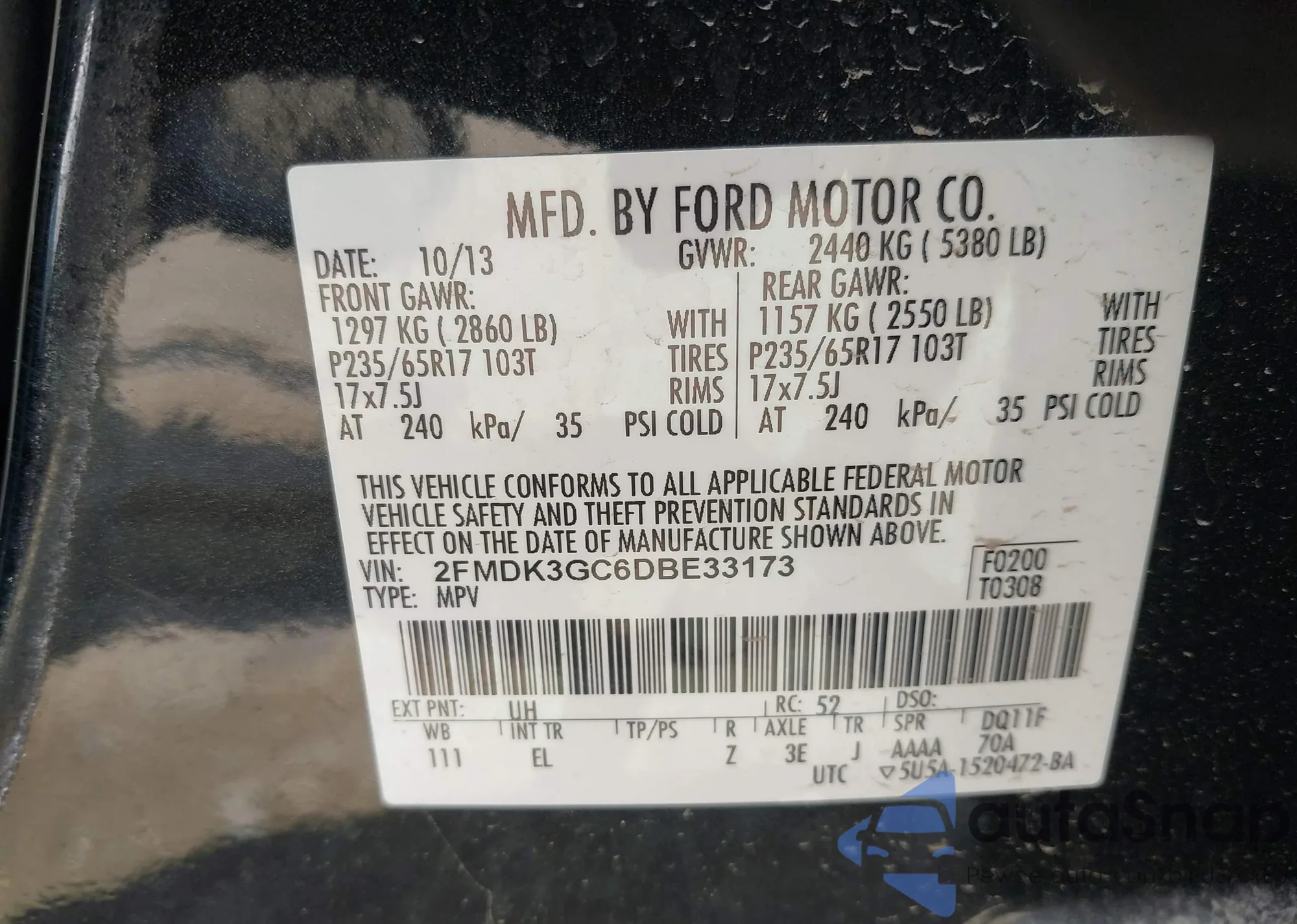 LOT: 42822680 VIN: 2FMDK3GC6DBE33173