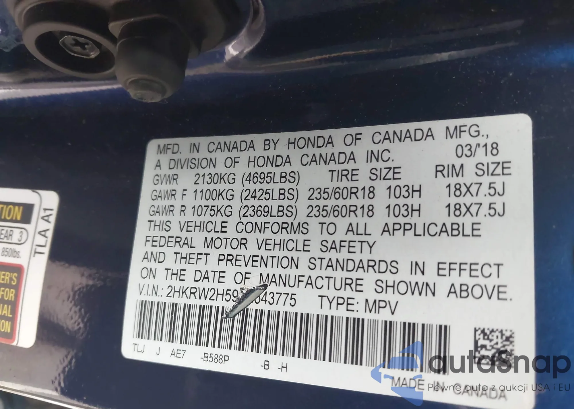 • VIN 5FNYF4H52BB099899