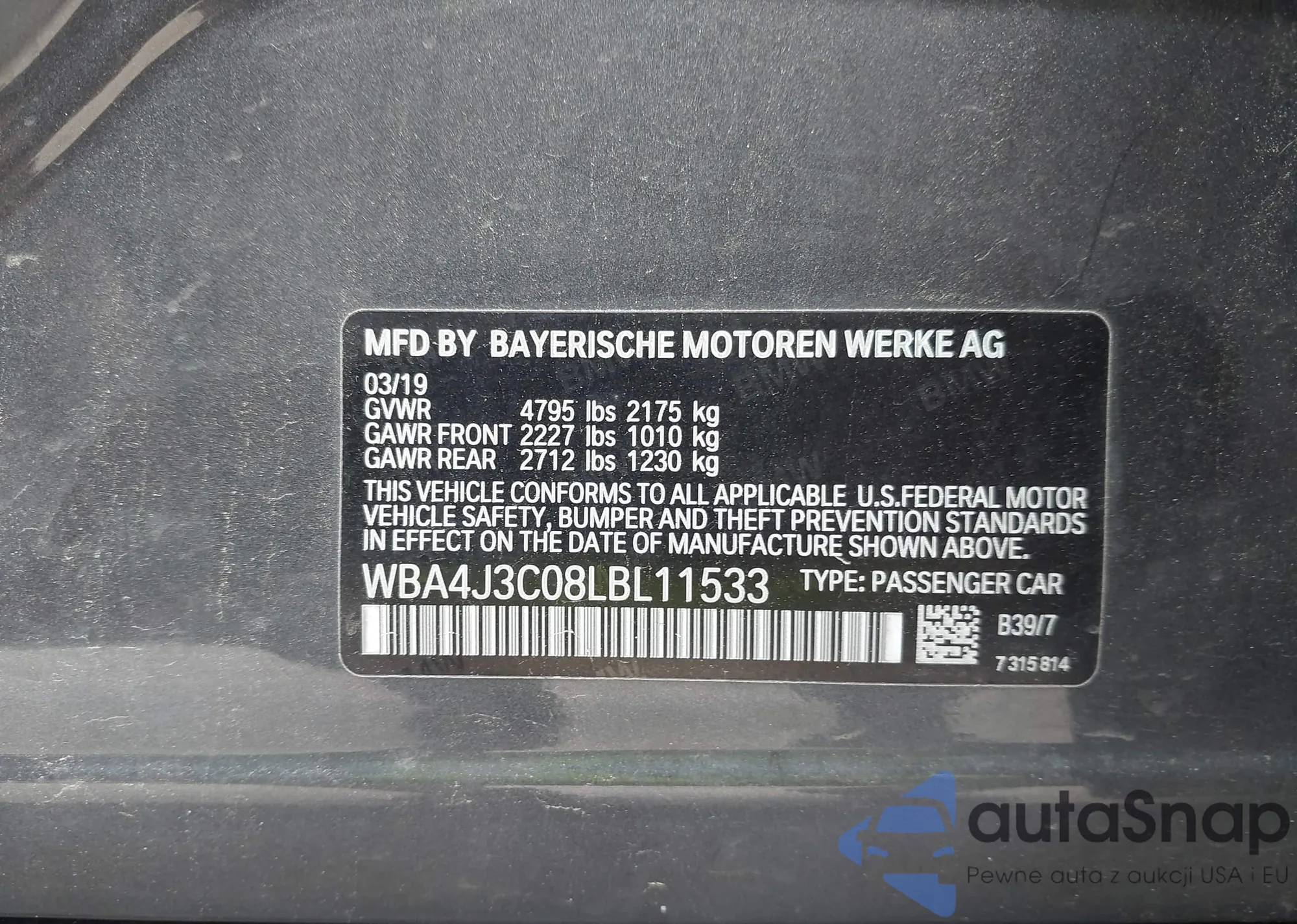 • VIN WBA4J3C08LBL11533