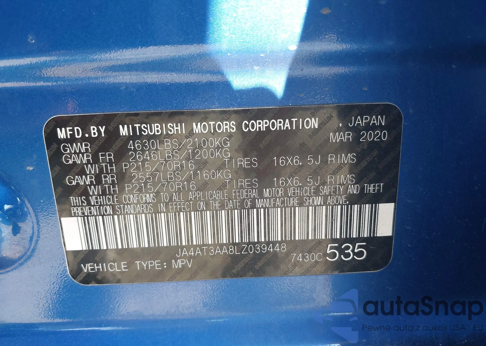 LOT: 42523390 VIN: WBA4J3C08LBL11533