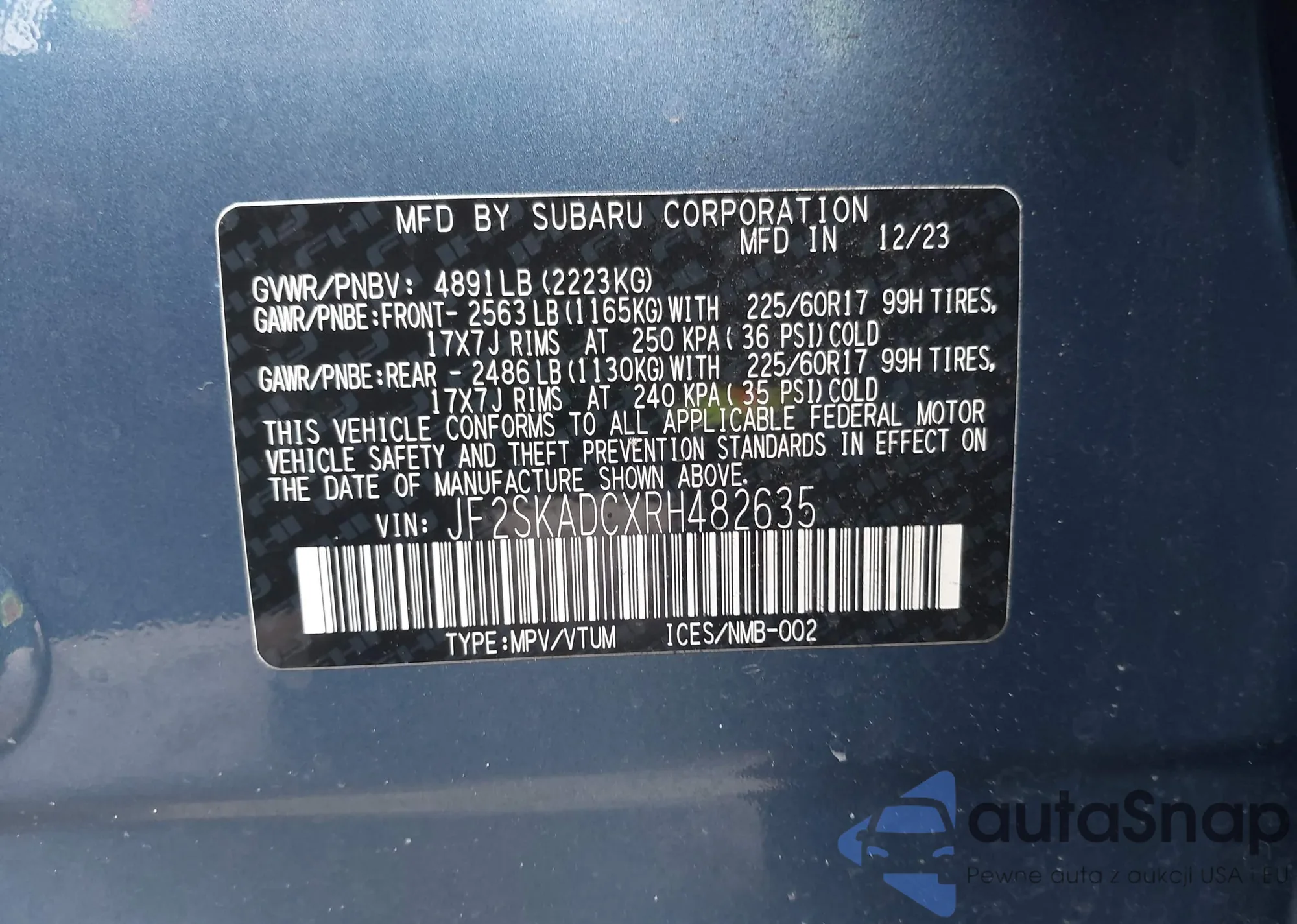 • VIN JF2SKADCXRH482635